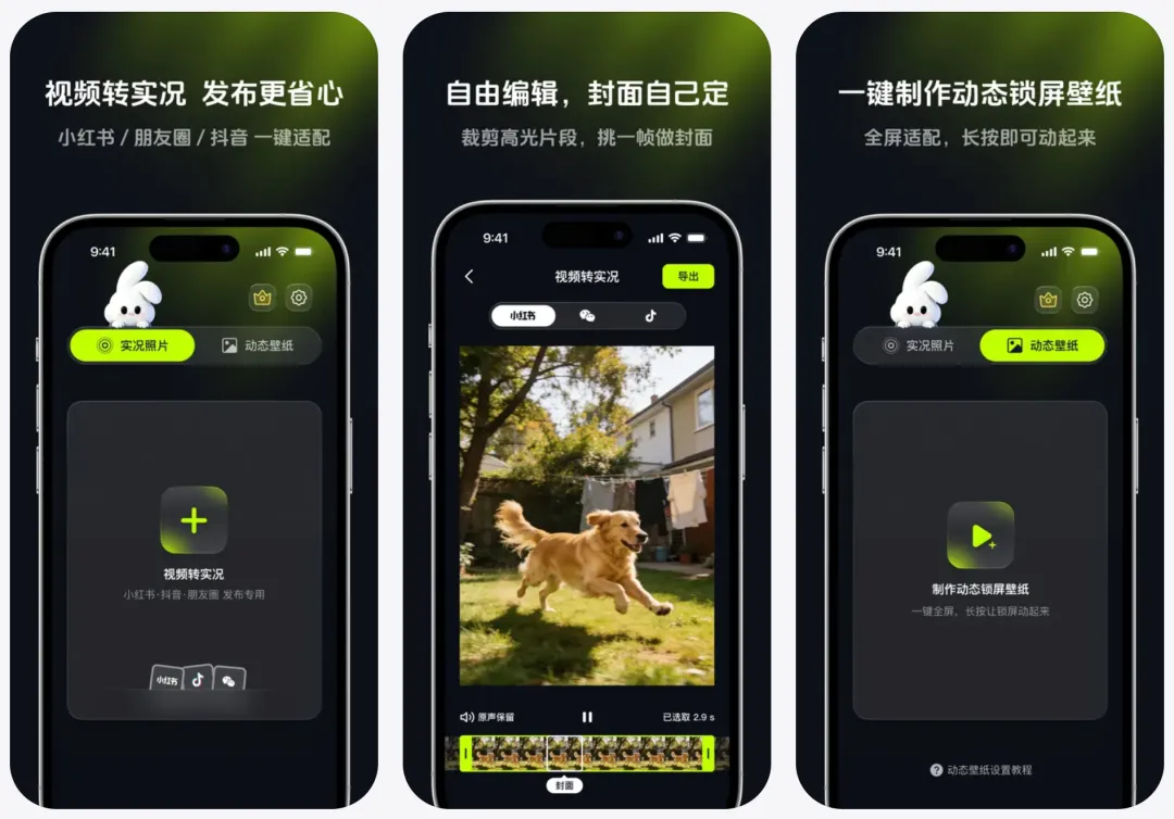 简介:一款把视频一键做成可直接发布的实况图,小红书、朋友圈、抖音都能用。