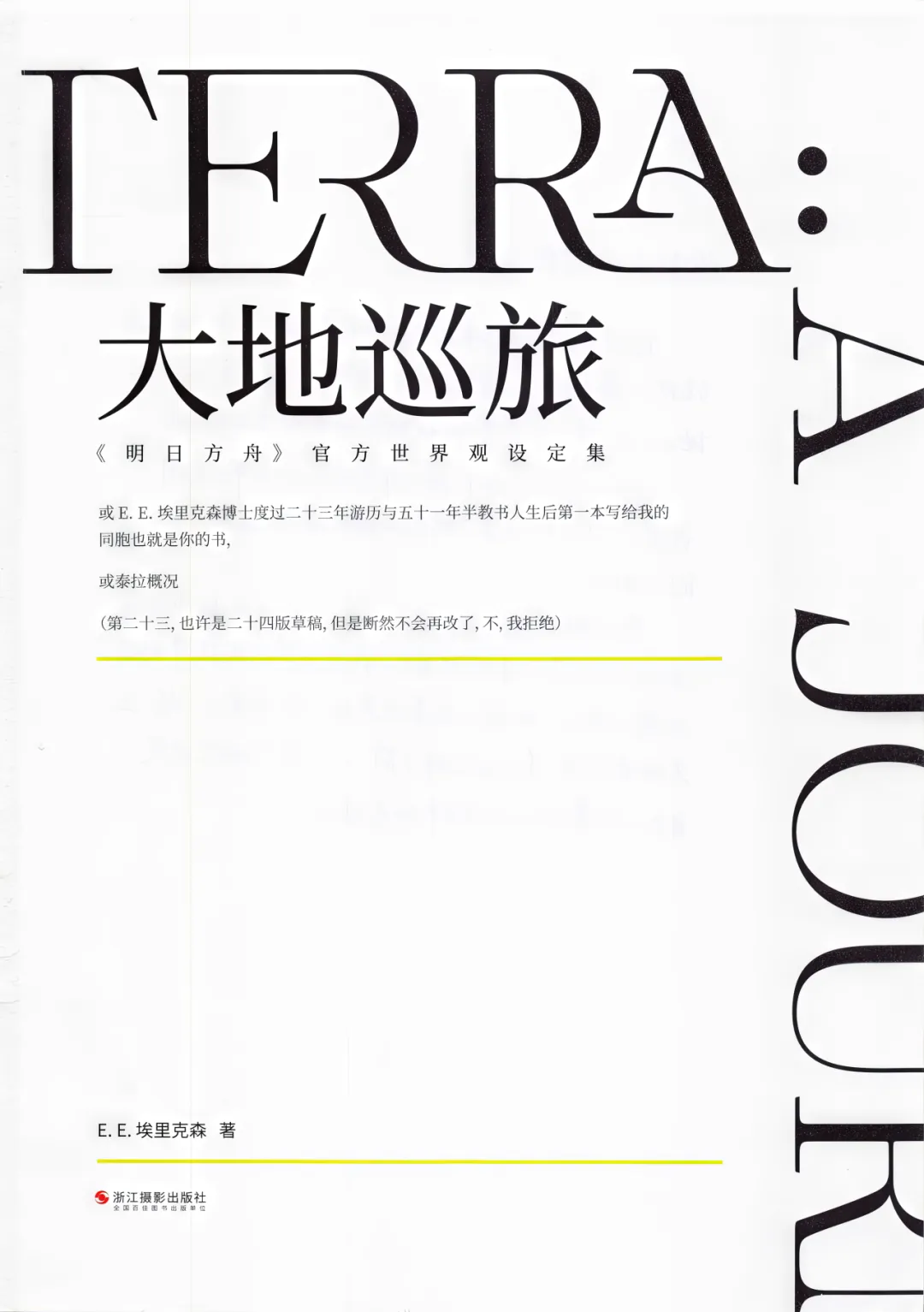 《大地巡旅:〈明日方舟〉官方世界观设定集》是鹰角网络推出的手机游戏《明日方舟》的世界观设定集,由浙江摄影出版社于2023年11月出版。