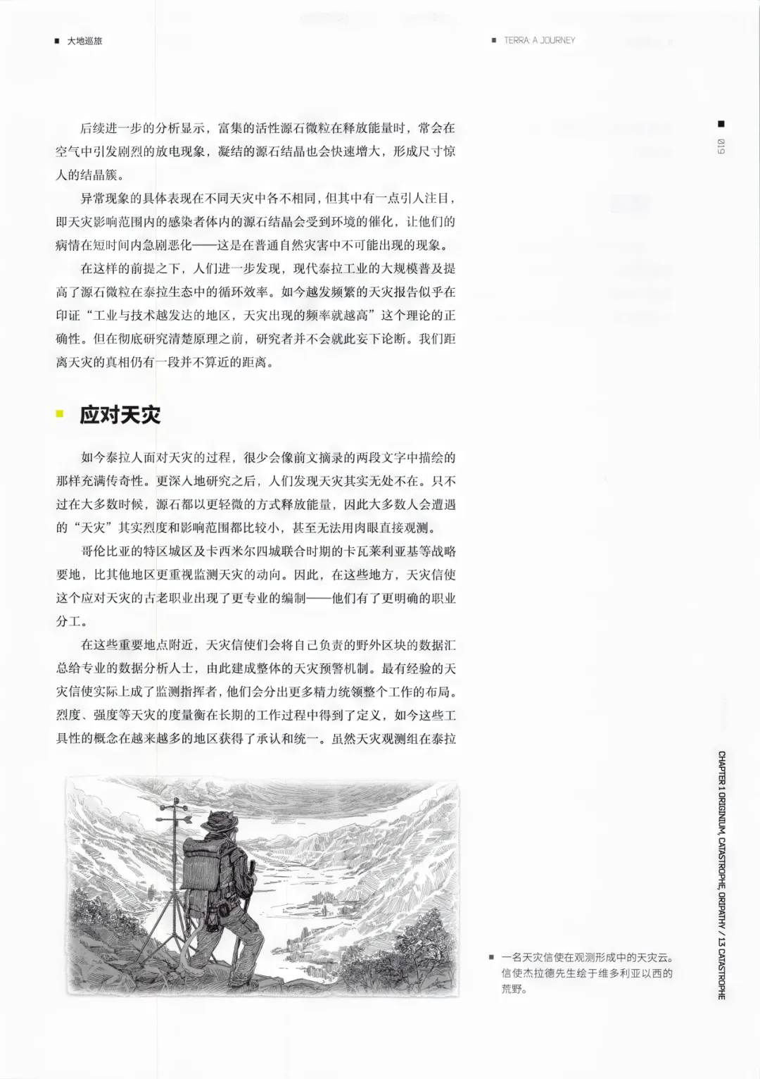 虽说本该对书中记载的内容烂熟于心,但第一次翻开正式完成的这本书时,我还是产生了一些久违的感受。我回想起一片广阔的草原,正在融化的冰晶自染成金色的灌木丛顶坠落,打湿了底下奔跑着的生灵的毛发。那并非这片大地最初的形貌,却是我看到它的第一眼,毫无疑问,这番景象早已在漫长的时光中变换了无数次,不可能在这本书里留下直接的记录。可正是这千万亿秒生命演化的瞬间堆积层叠,构成了如今的泰拉。