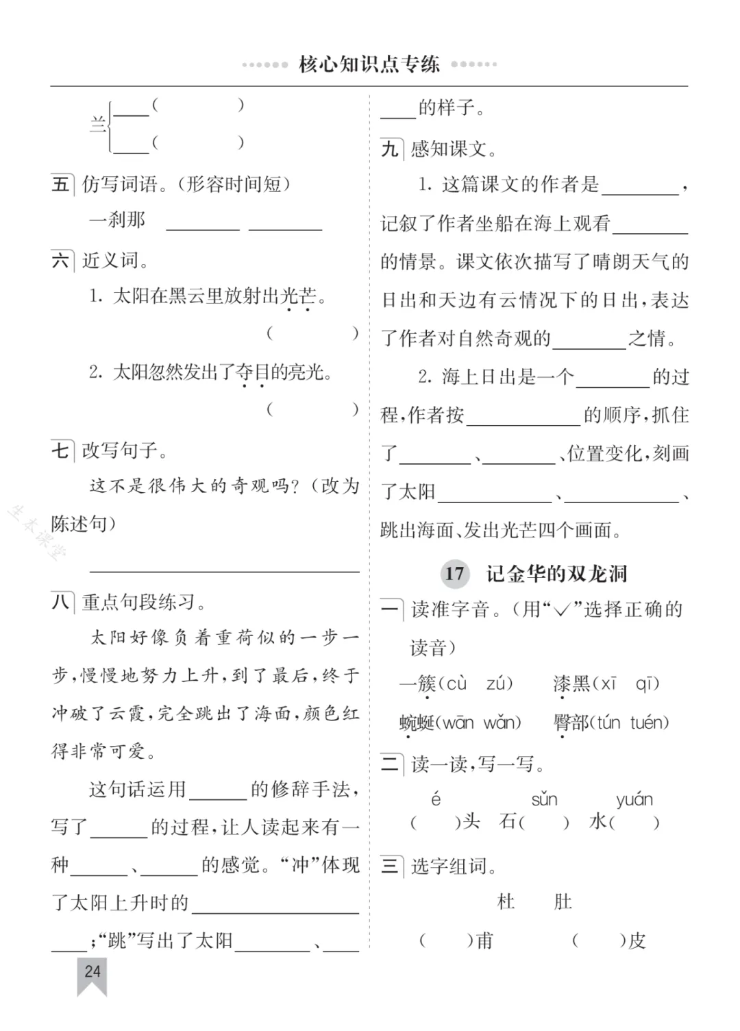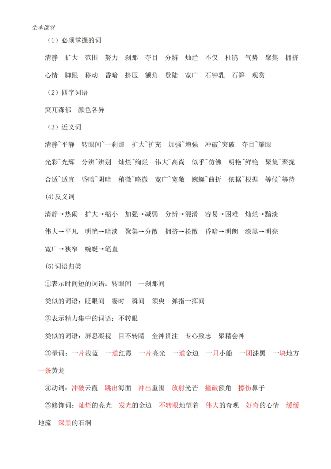 四年级下册语文第五单元知识点梳理,电子版,可打印