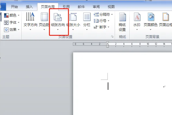 4、然后在页面布局界面找到“纸张方向”选项,点击;