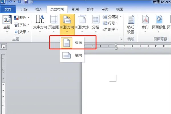 5、就会弹出两个纸张方向供选择,选择“纵向”,则可将页面设置为A4纸大小,纵向排列的了。