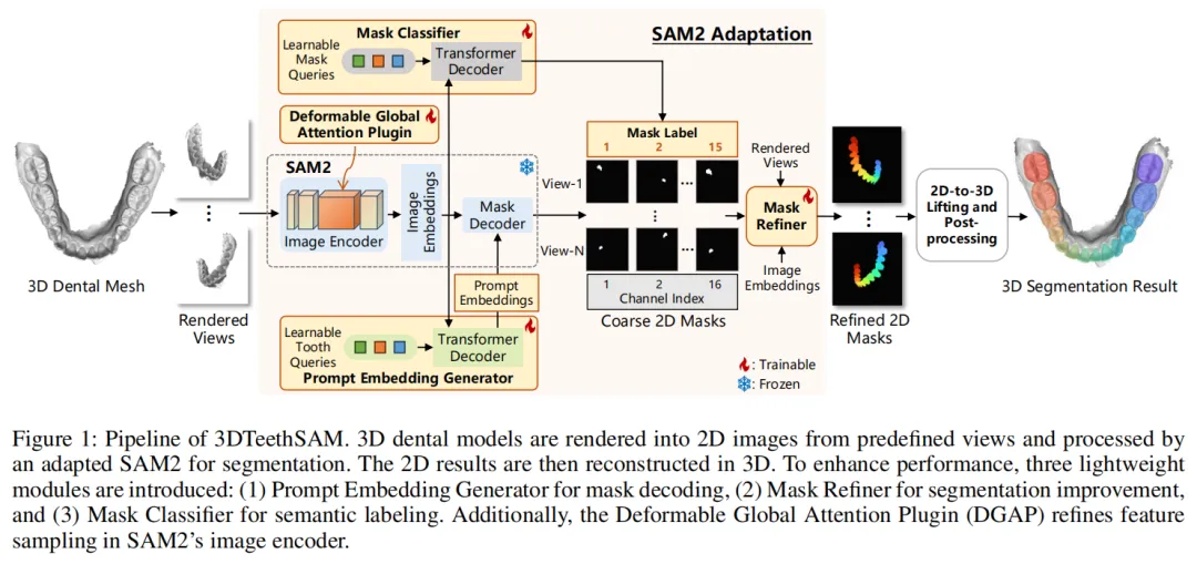 家人们,今天挖到一篇超顶的计算机视觉+数字牙科方向的论文!来自AAAI 2026的3DTeethSAM,直接把火遍全网的SAM2模型“驯化”成了3D牙齿分割的高手。不仅精度干到了新高度,还解决了一堆行业痛点。看完我直呼太会玩了!