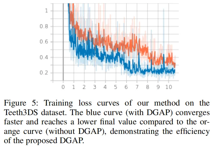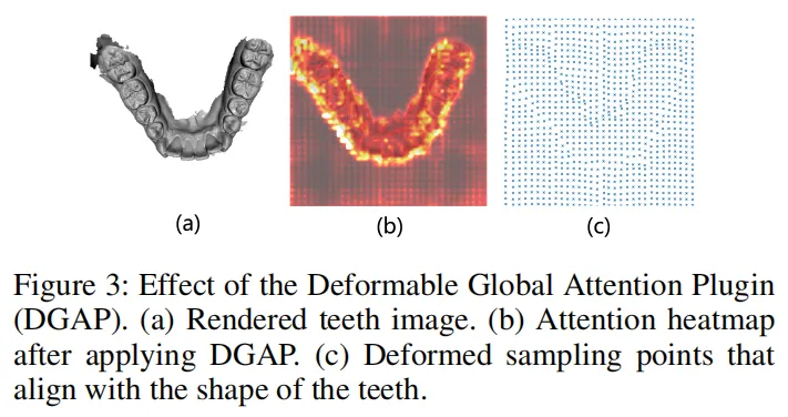 作者还给SAM2的图像编码器加了个“注意力buff”——可变形全局注意力插件(DGAP)。简单说,这个插件能让模型自动把注意力聚焦在牙齿区域。动态采样特征,不仅分割精度提上去了,训练收敛还快了一大截。精度和效率直接双丰收!
