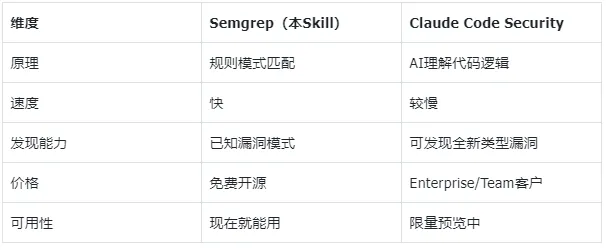 日常开发用Semgrep做基础安全扫描,等Claude Code Security开放后再升级。