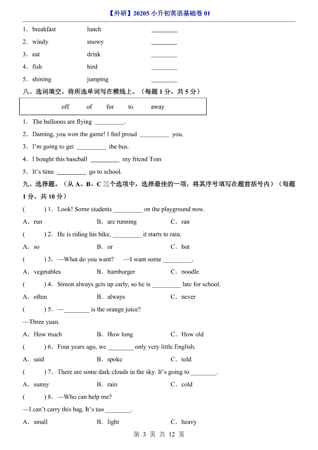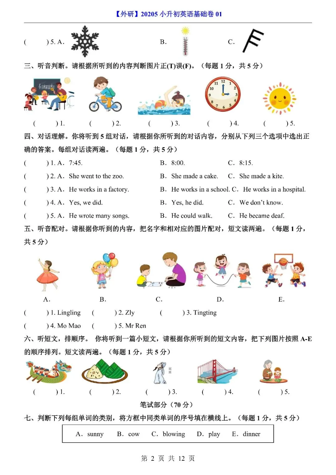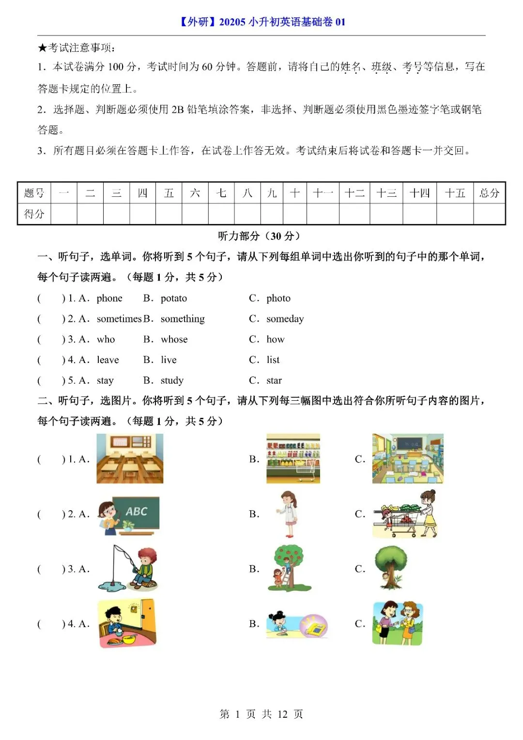 26年春《小升初外研英语基础卷01》完整电子版,有答案和答题卡,文末有下载链接,可自取