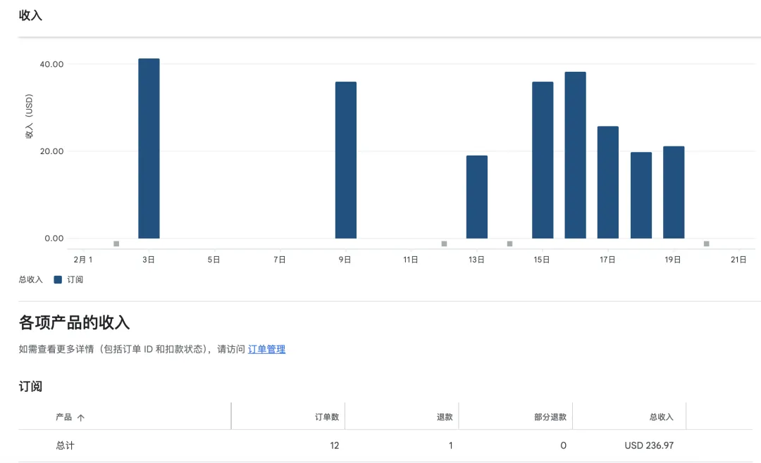 订阅收入:$236(日均 $10.7)