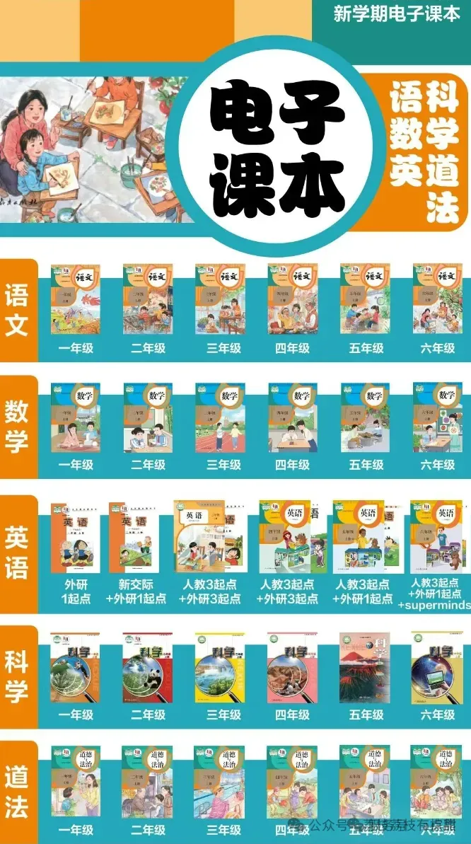 【电子教材】2026最新秋版小学【全科】一二三四五六年级上下册(2026版,语文+数学+英语+高清无水印)