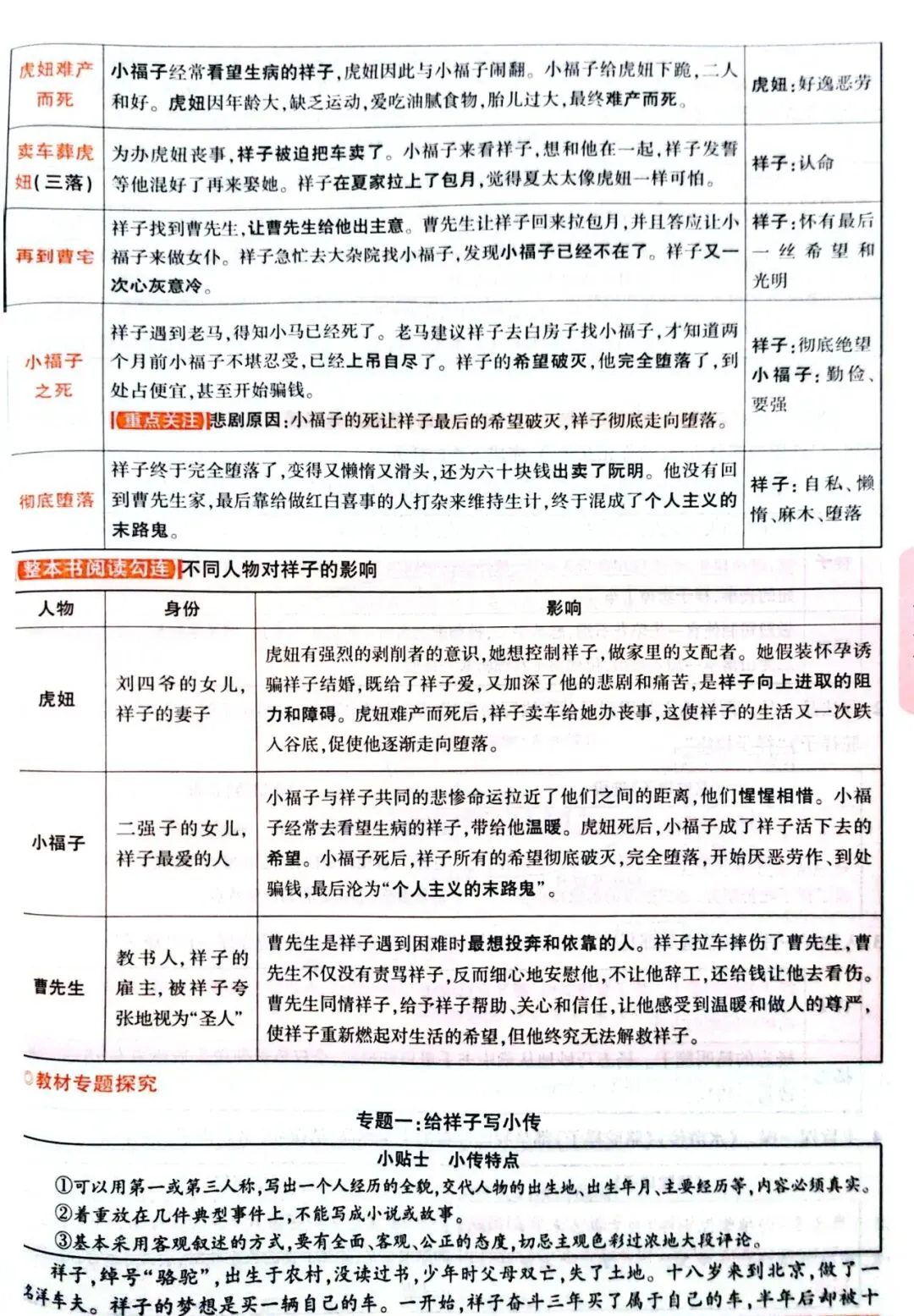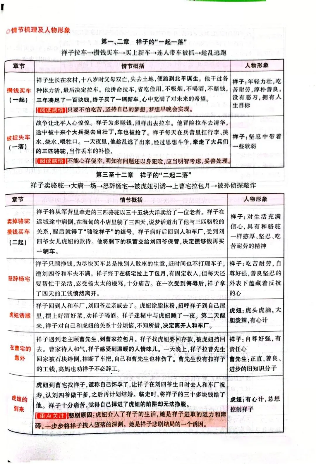 七下语文 《骆驼祥子》名著阅读资料【 可打印】
