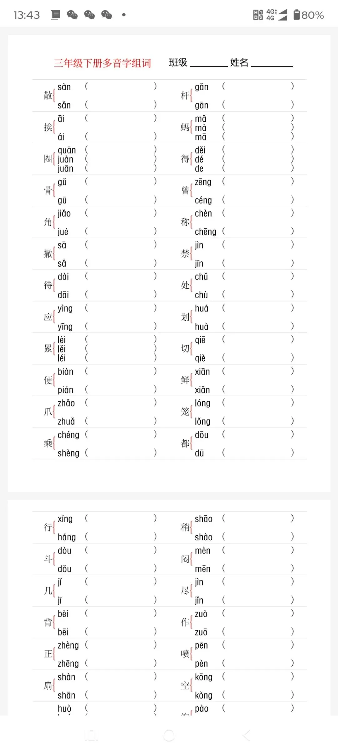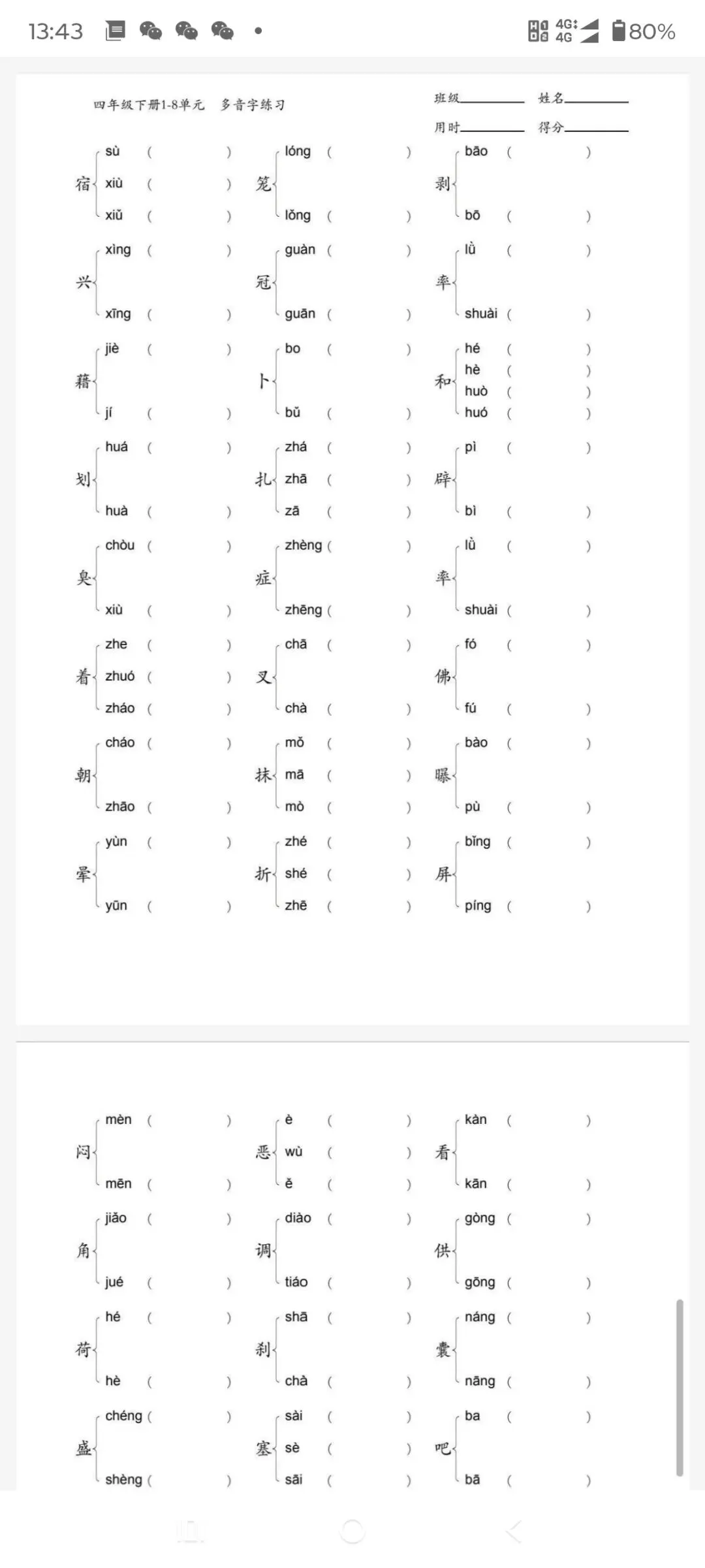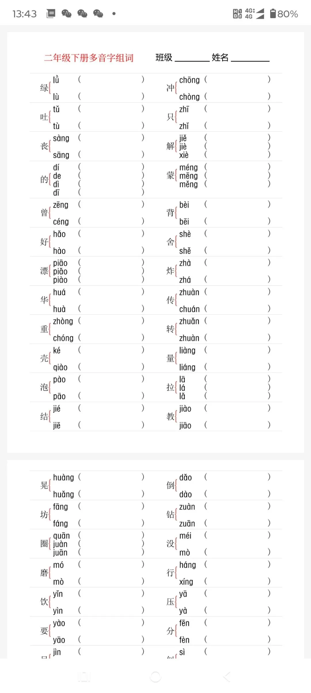 1-6年级下册多音字专项训练(可免费下载保存打印)
