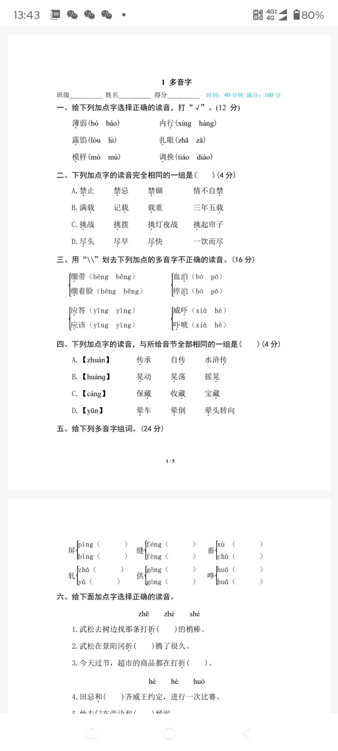 本文内容分享【多音字专项训练1-6年级下册】