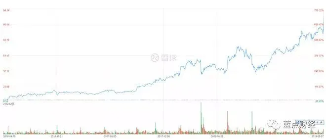 之后几天Match Group股价有所回落。但是,纵观Match Group股价过去几年的表现,真的是不看不知道,一看吓一跳,从2016年三月最低的8美元多一点,一条超级大阳线一路上涨,即使股价回落之后,依然有80美元之多,在三年半的时间里疯狂上涨了接近900%,是一只名副其实的三年十倍超级大牛股。