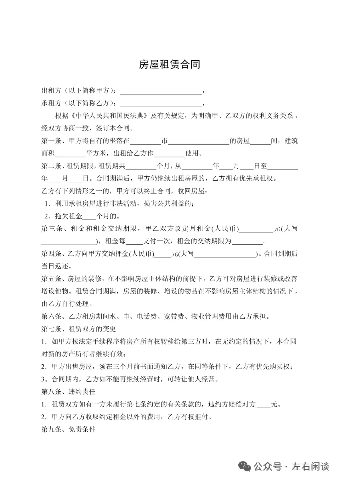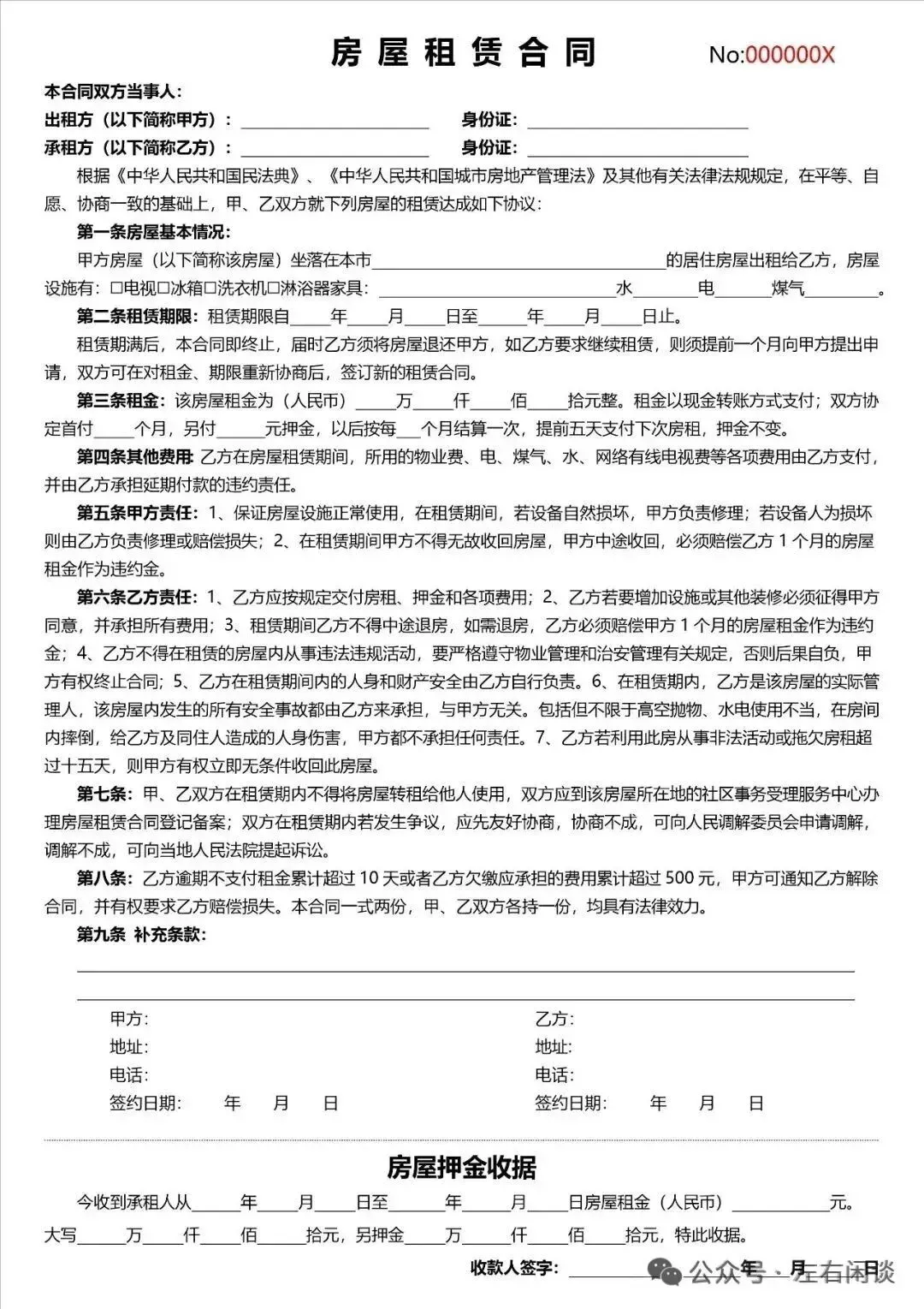 关注后在公众号对话框回复“租房合同”