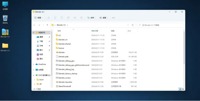 7.已经可以正常使用(桌面上Blender文件夹再软件关闭情况下,可