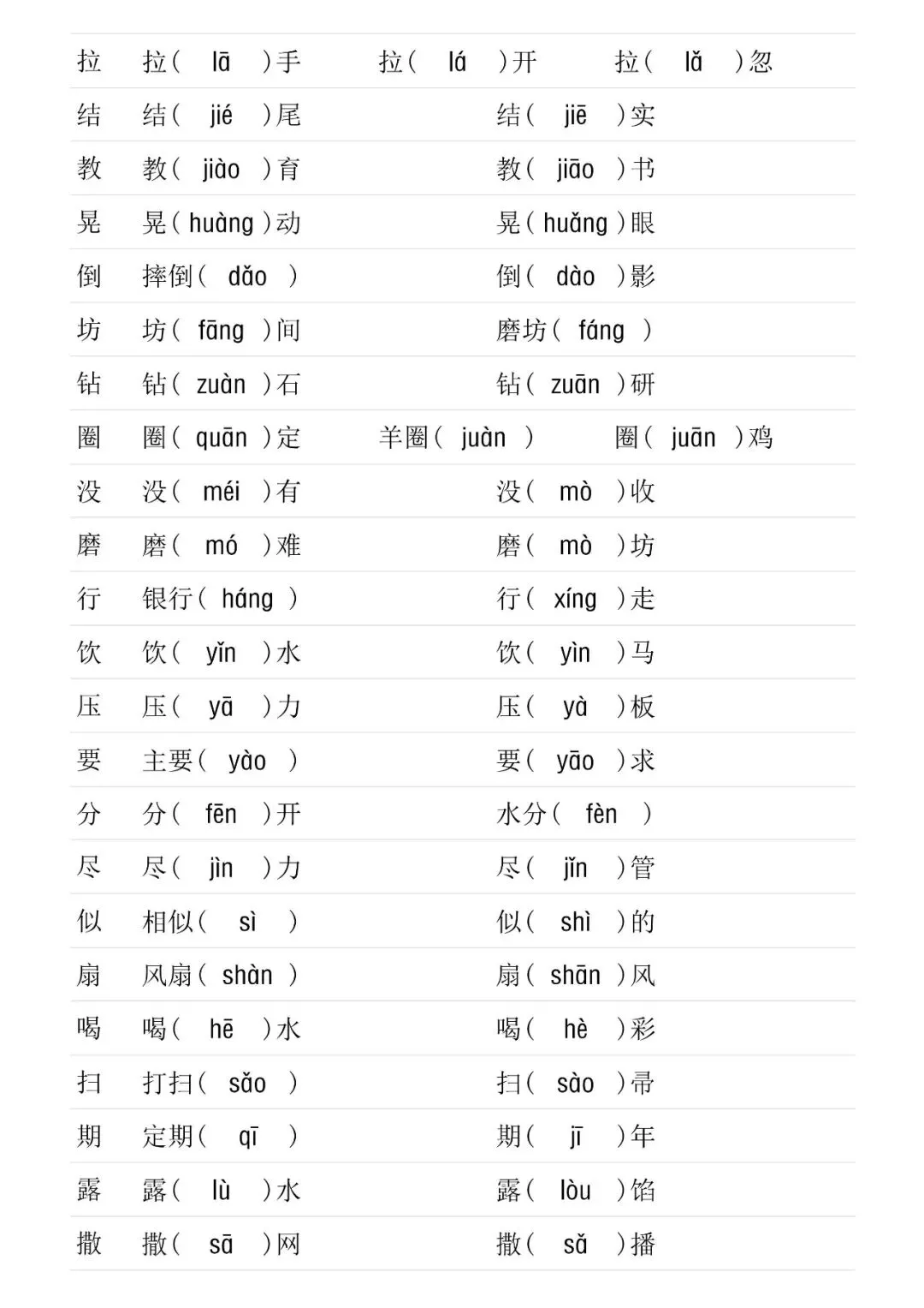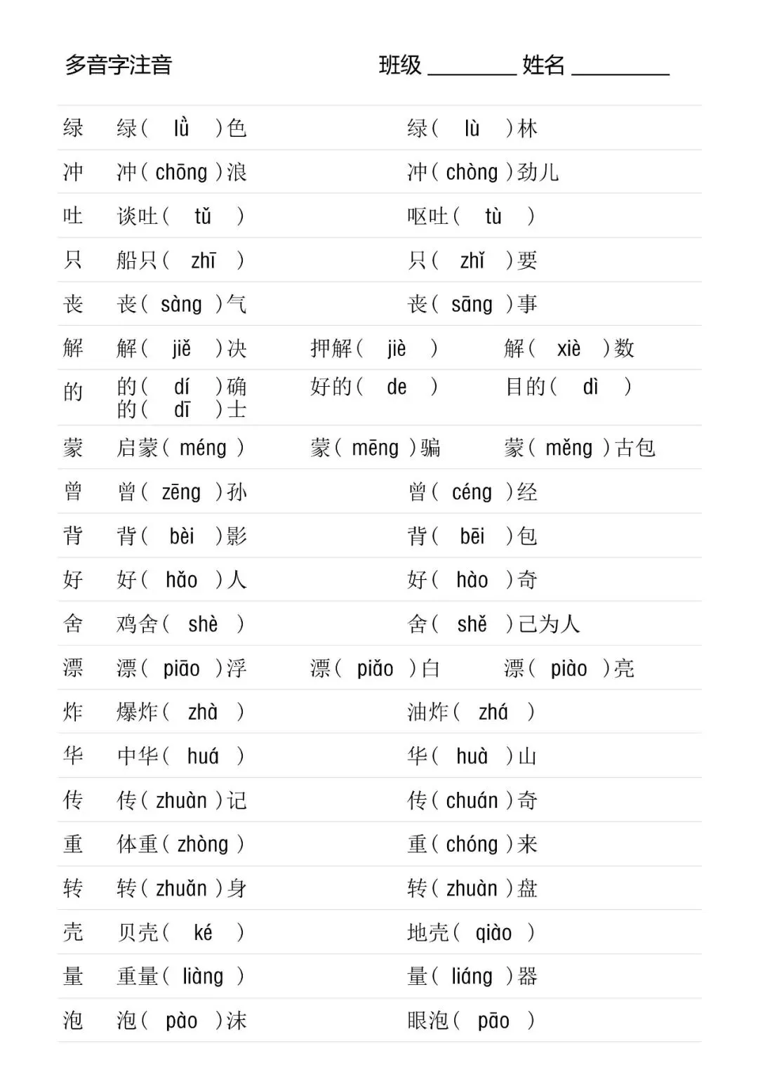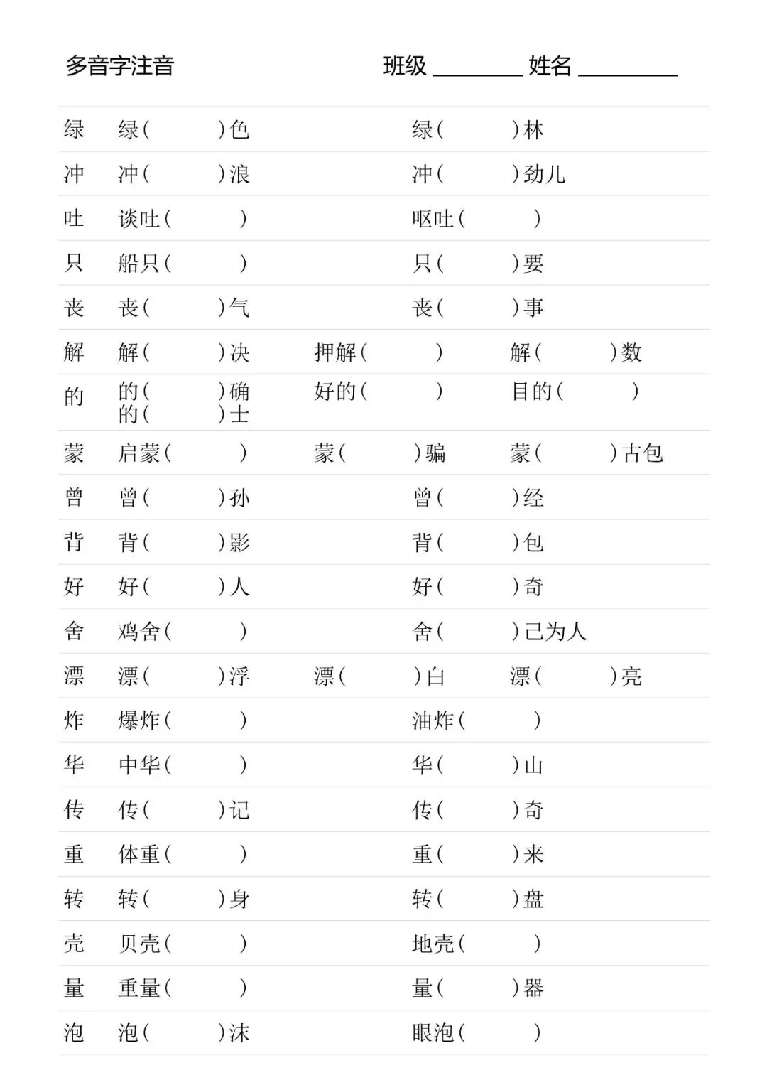 二年级下册多音字专项训练(含电子打印版)