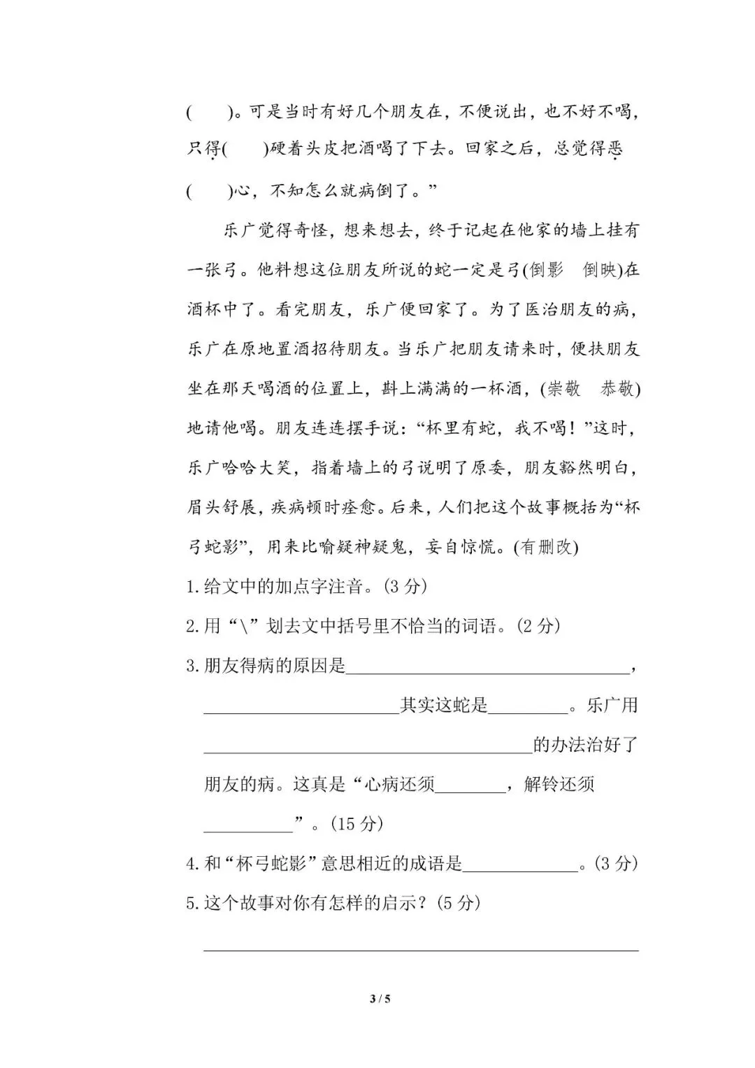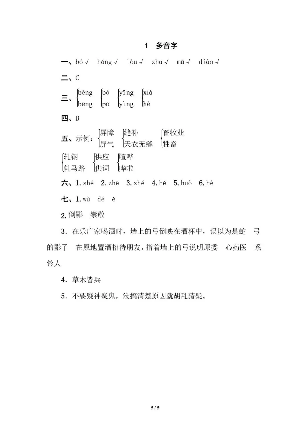 五年级下册多音字专项训练(含电子打印版)