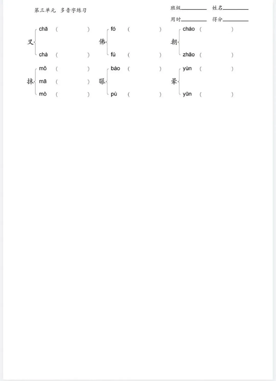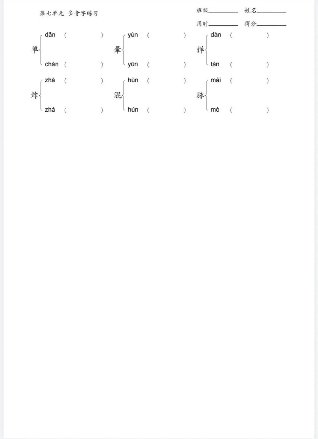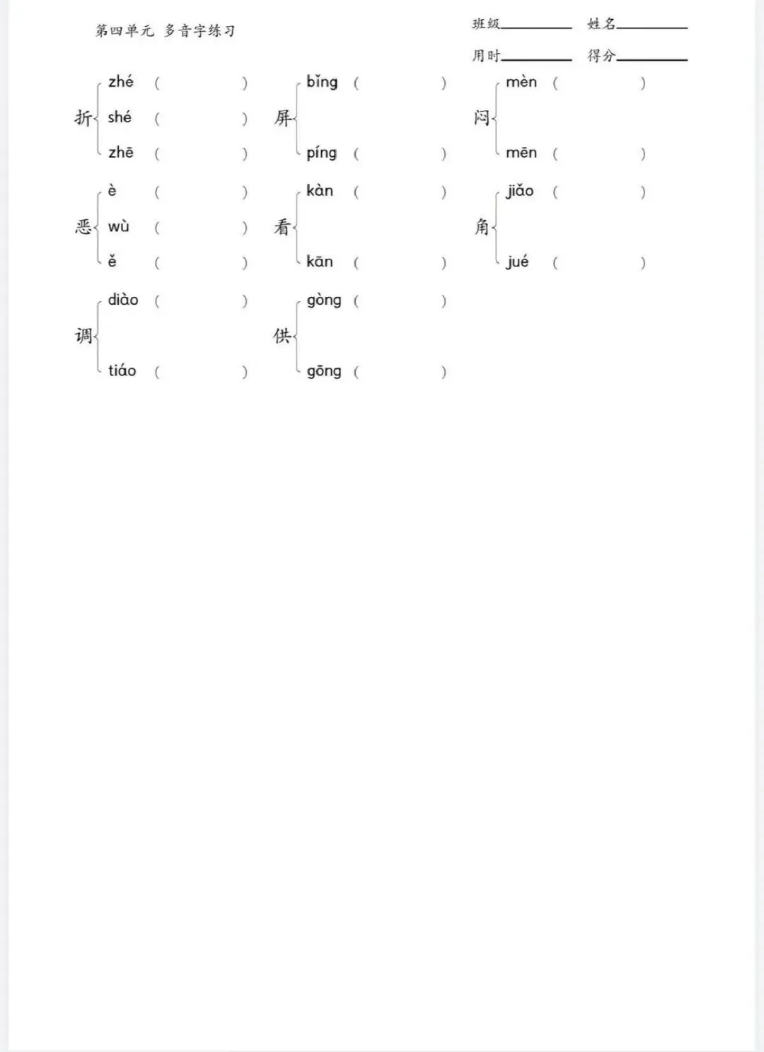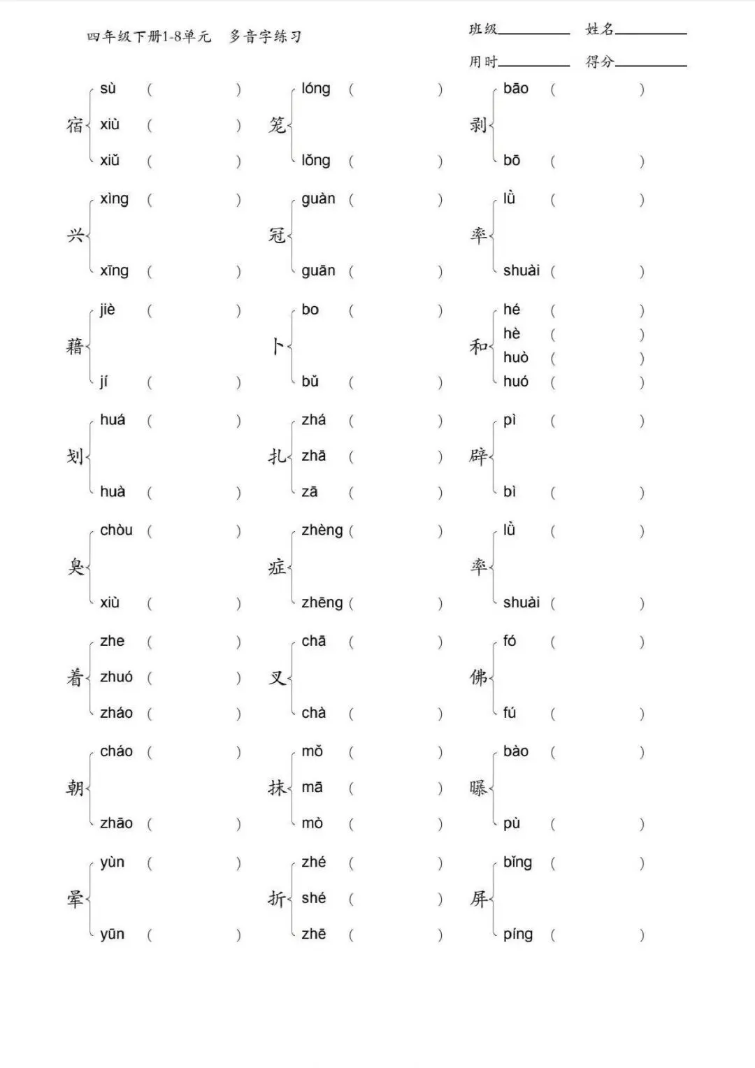 四年级下册多音字专项训练(含电子打印版)