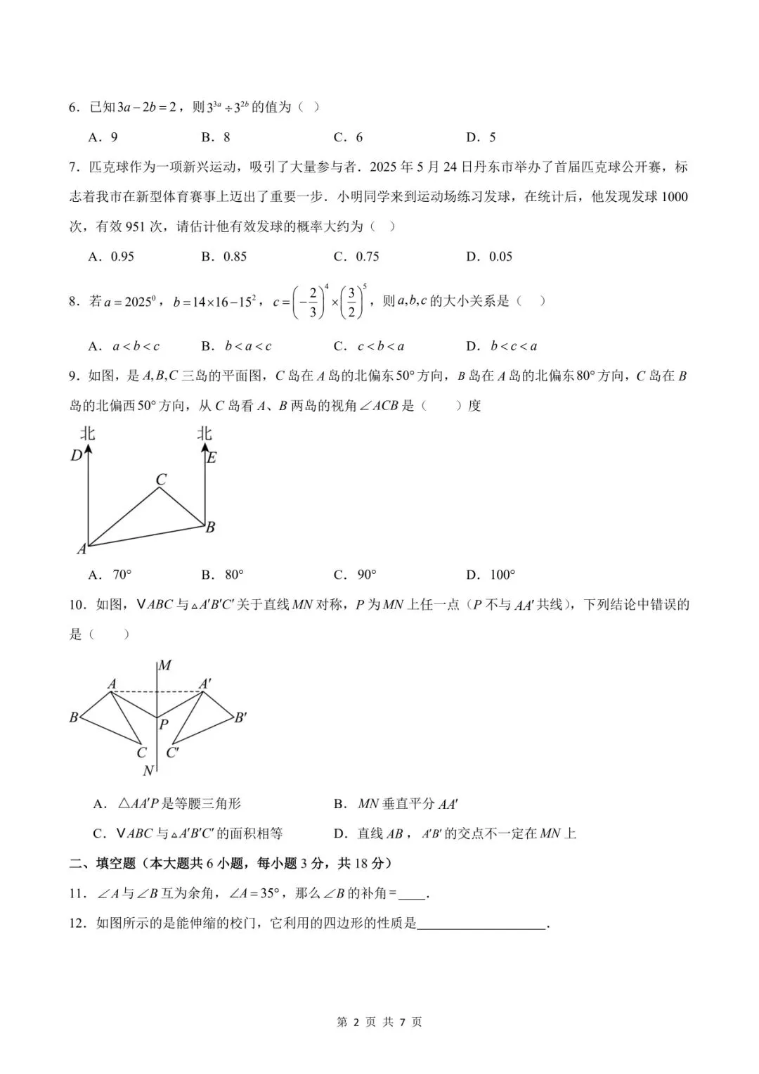 2026年春北师大版初一七年级下册数学《开学摸底检测卷,寒假验收卷》(含答案解析,共2套)-高清可打印