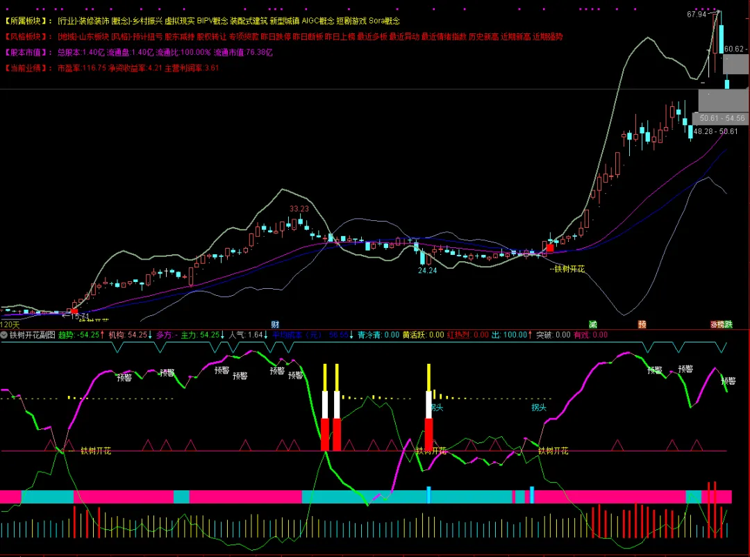 通达信量化【铁树开花】指标源码详解免费分享(1主1副1选,可扫码安装)