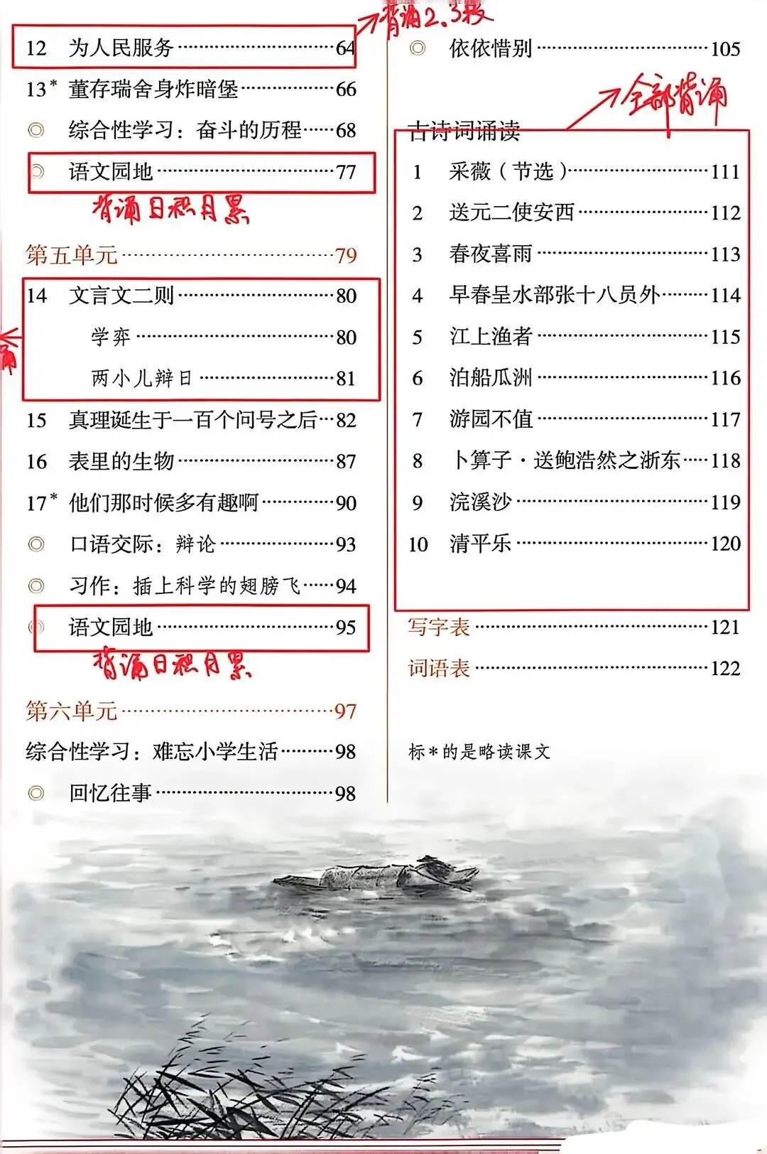 2026年春人教部编版语文六年级下册必背内容整理(古诗、 课文、日积月累),寒假背诵!(可打印)