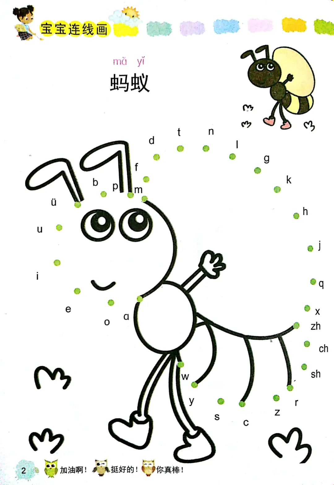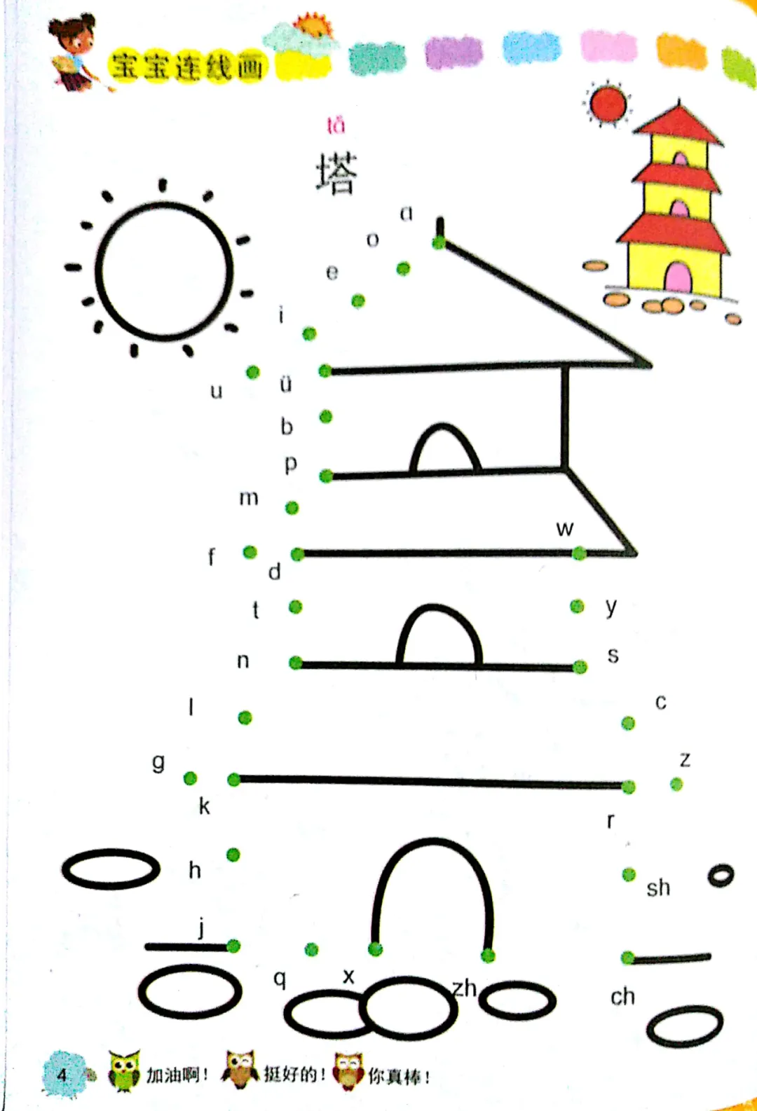 本资料通过“连线画”的形式,将拼音学习与绘画游戏巧妙融合,帮助孩子在轻松有趣的互动中,自然掌握拼音基础,激发学习兴趣。
