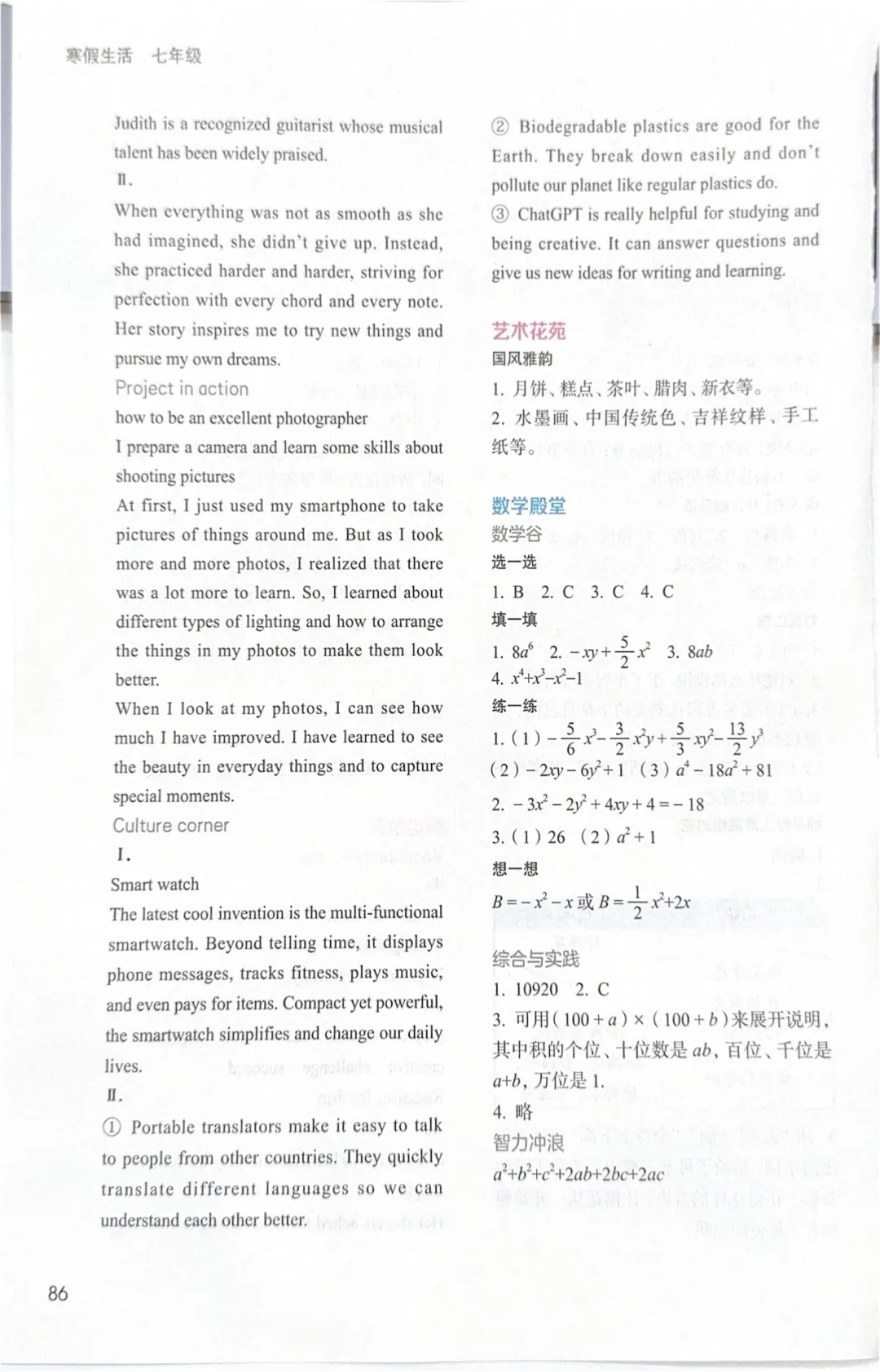 寒假生活作业答案完整版