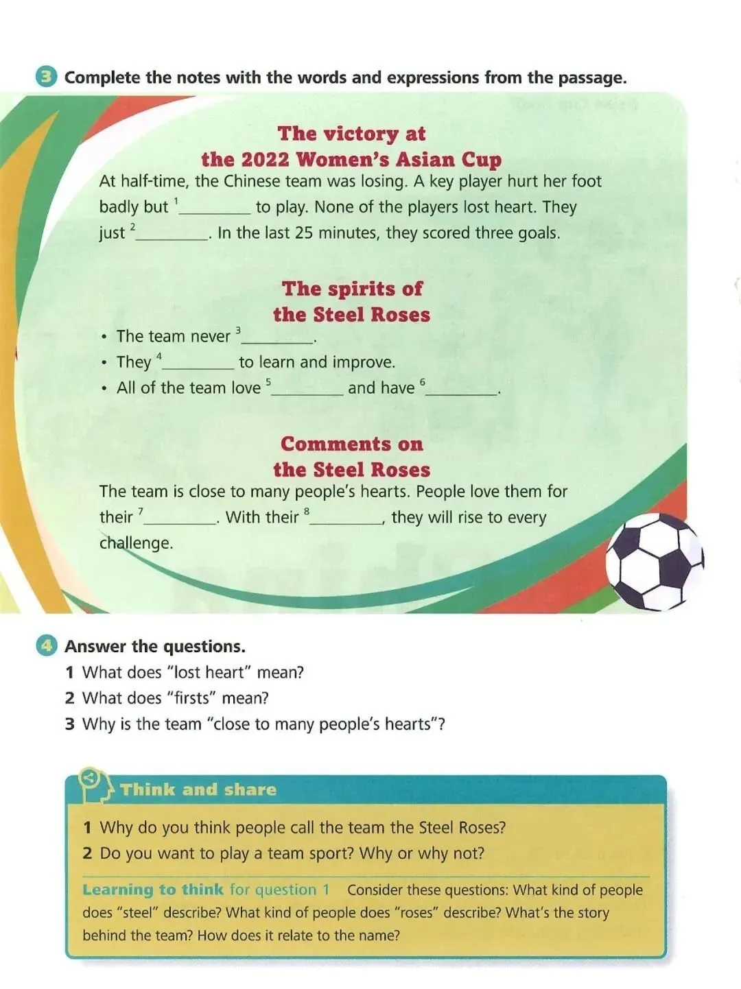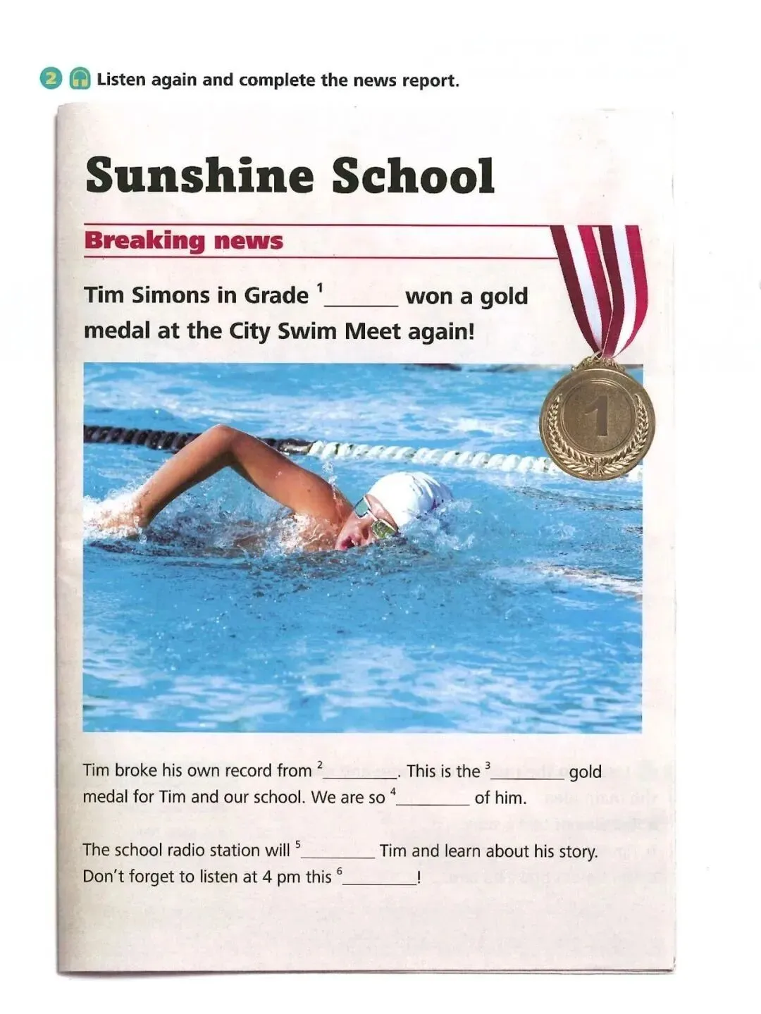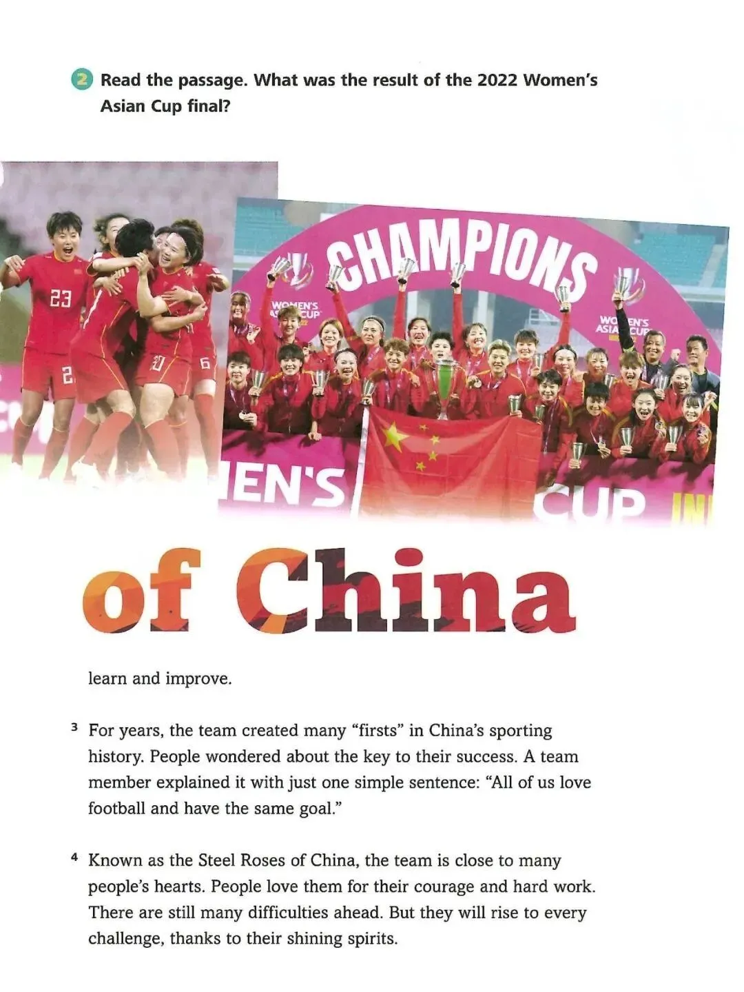 Zhang felt confident before the race. But he had a stomachache on the way. This made him fall behind. “Shall I take a rest or stop?” he thought. Either choice seemed fine for someone at his age. But Zhang chose neither of them. He just ran on. With people cheering, he finally crossed the finishing line!