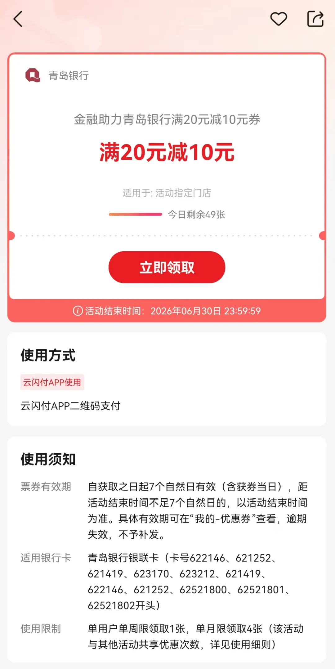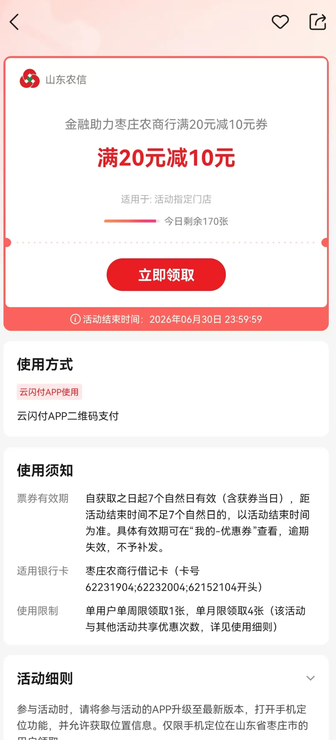【活动通知】云闪付APP满20元-10元活动来袭!!!
