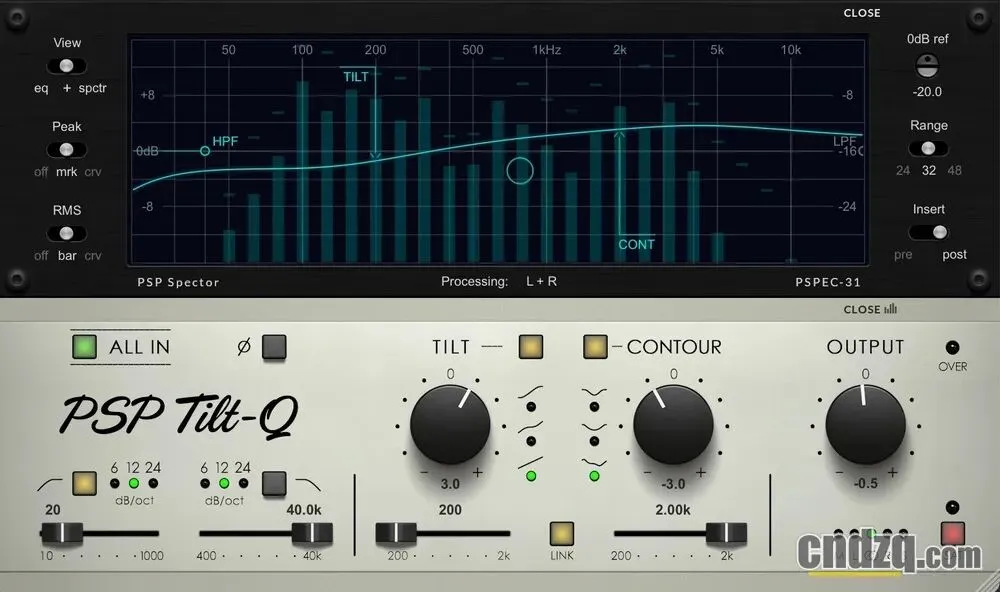 • 集成PSP Spector PSPEC-31频谱分析仪:内置31段频谱分析仪,支持条形/曲线显示模式,提供均衡处理前后的实时可视化效果。