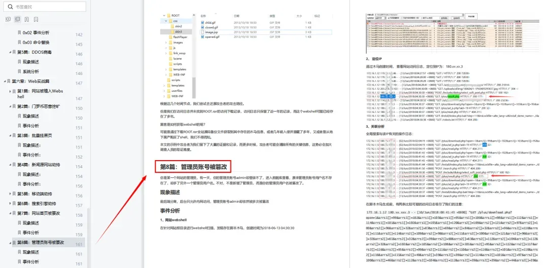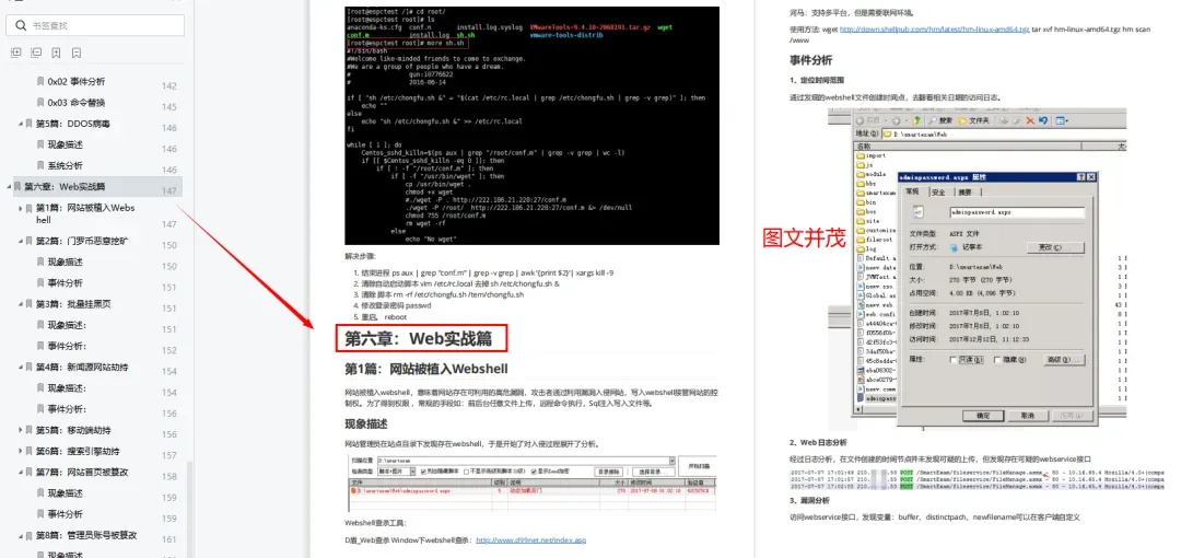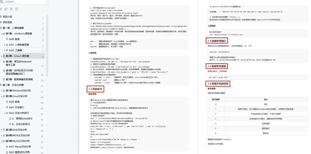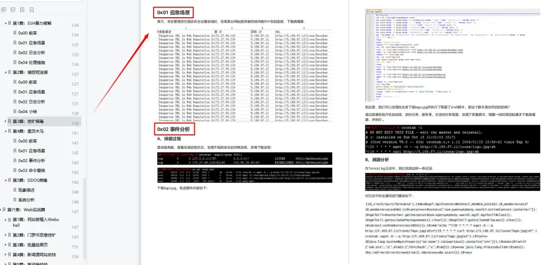 为此,给大家分享一份应急响应实战笔记,共168页6大章,包括入侵排查、日志分析、权限维持、实战等内容,图文并茂,内容详尽,非常适合安全人/爱好者学习参考。