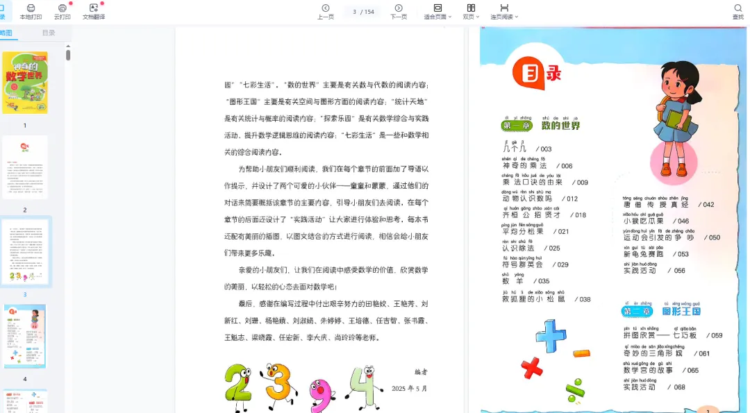 书中通过童童和蒙蒙两位小向导的趣味对话,将抽象的数学概念自然融入生活场景,涵盖“数的世界”“图形王国”“统计天地”“探索乐园”“七彩生活”等章节,帮助孩子深化对数学知识的理解,激发学习热情,培养用数学的眼光观察世界、用数学的思维解决问题的能力。