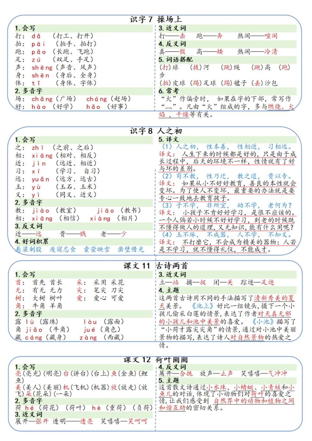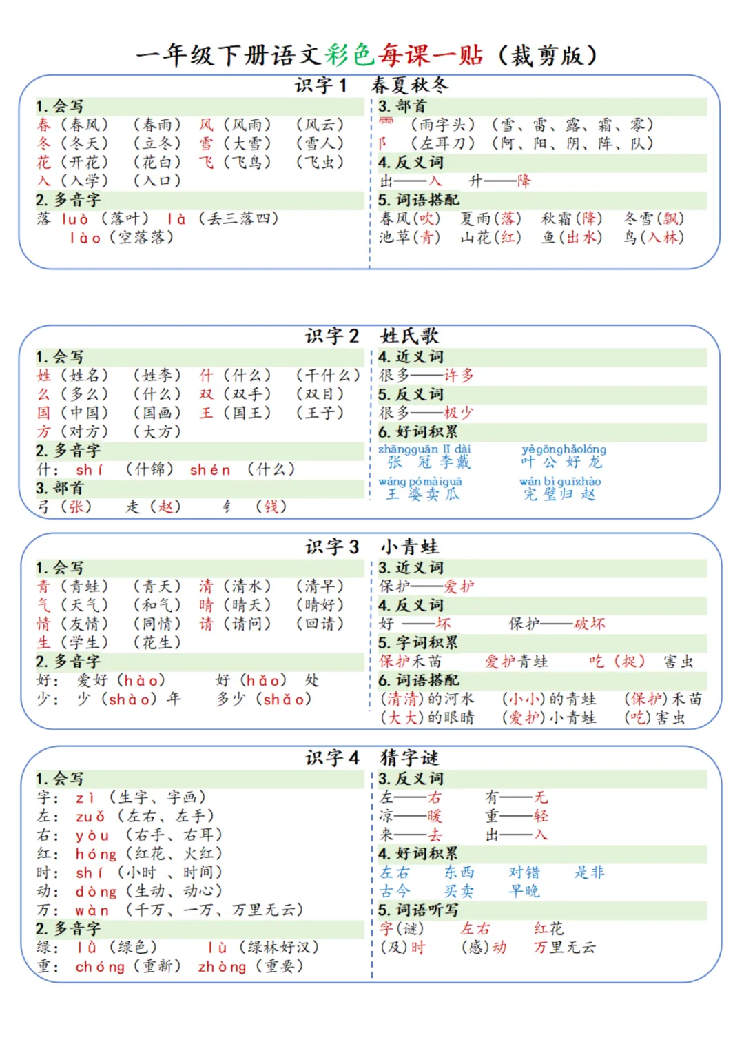 南京家长查收~一年级语文下册课课贴来啦!每一页都聚焦一课的核心内容,部首、组词拓展、词语搭配等。家长辅导更省心,家有一年级娃的别错过!