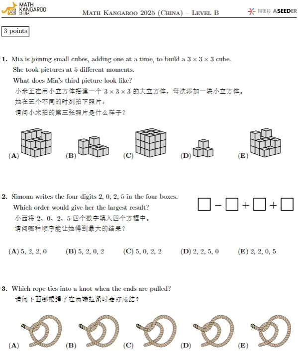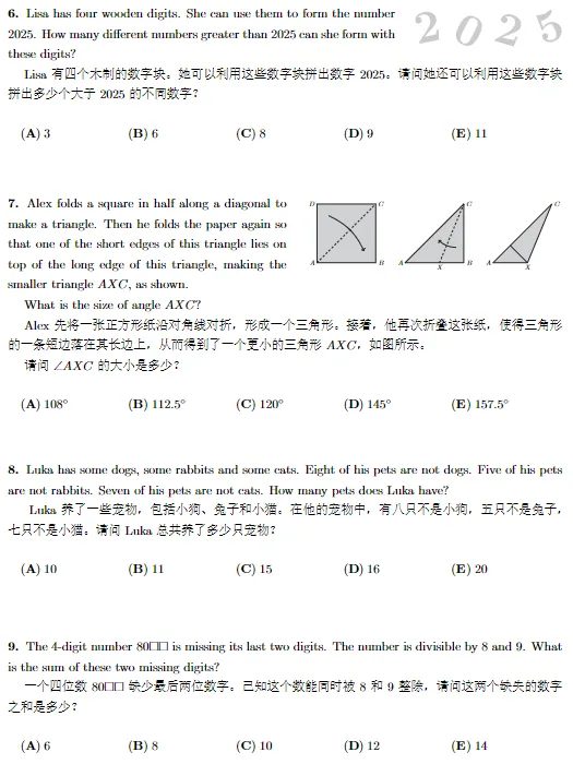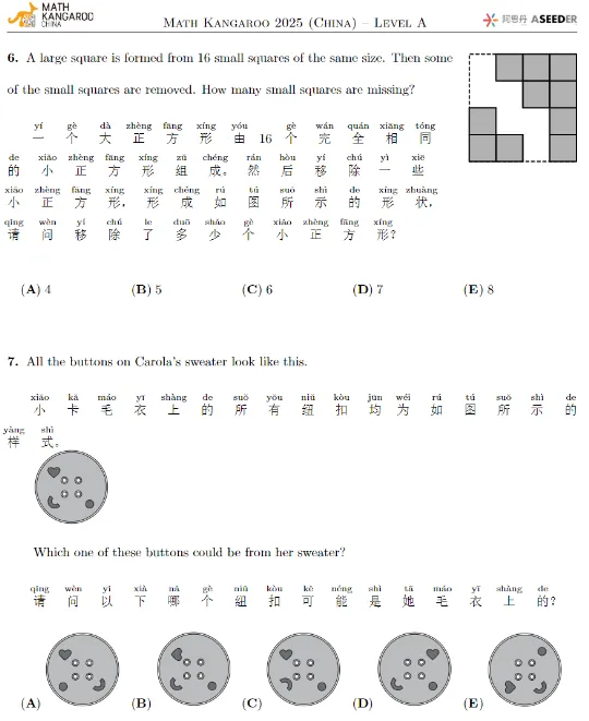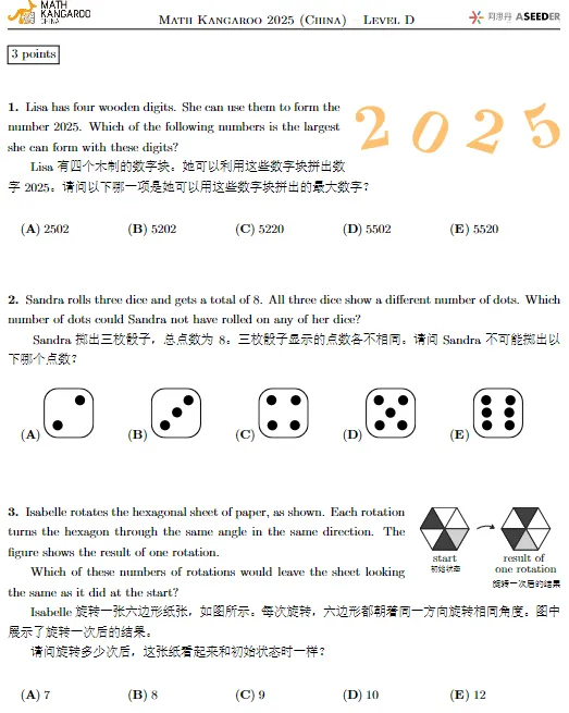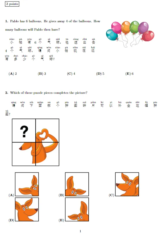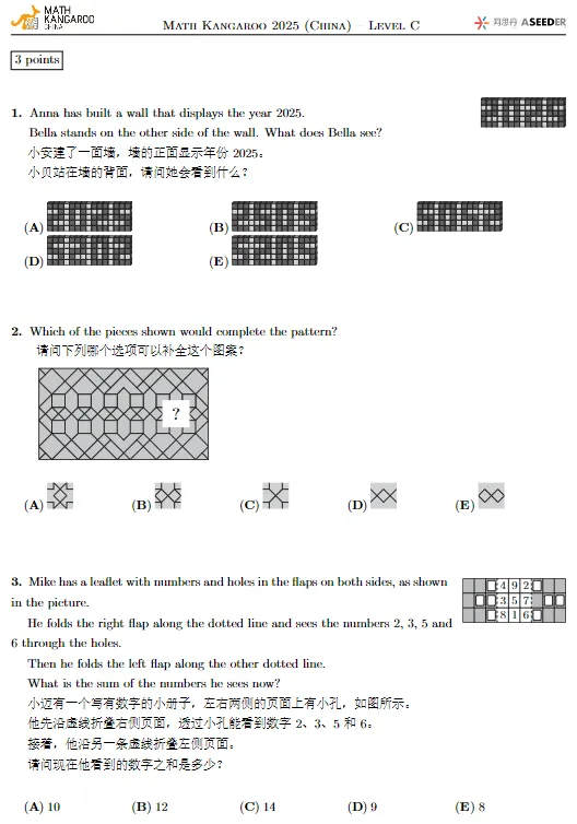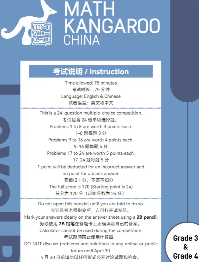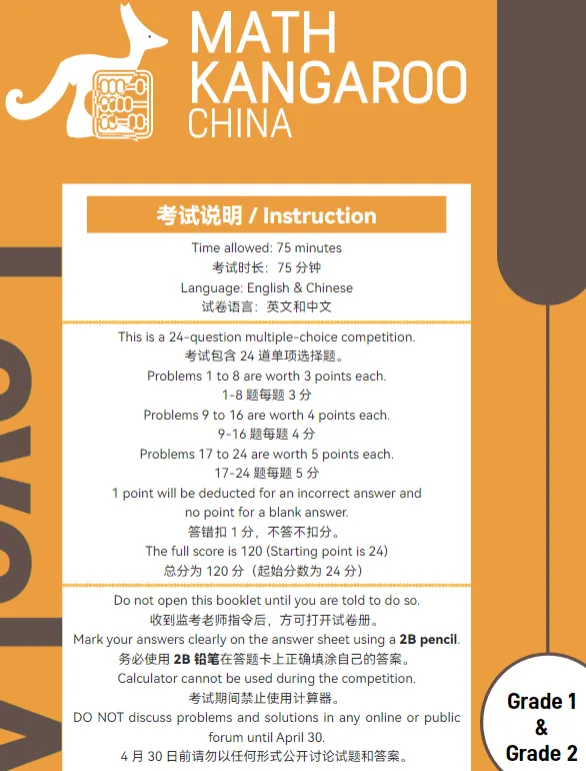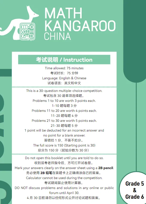 袋鼠数学历年真题免费领!中英双语PDF版