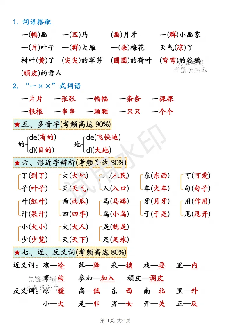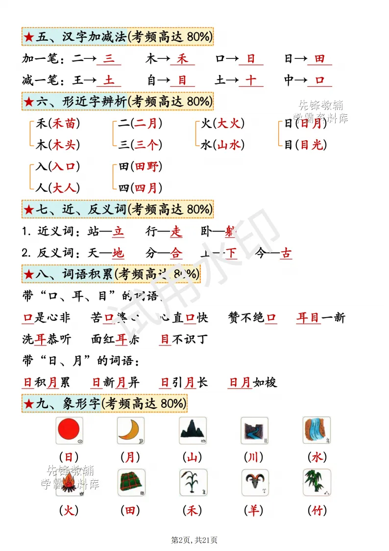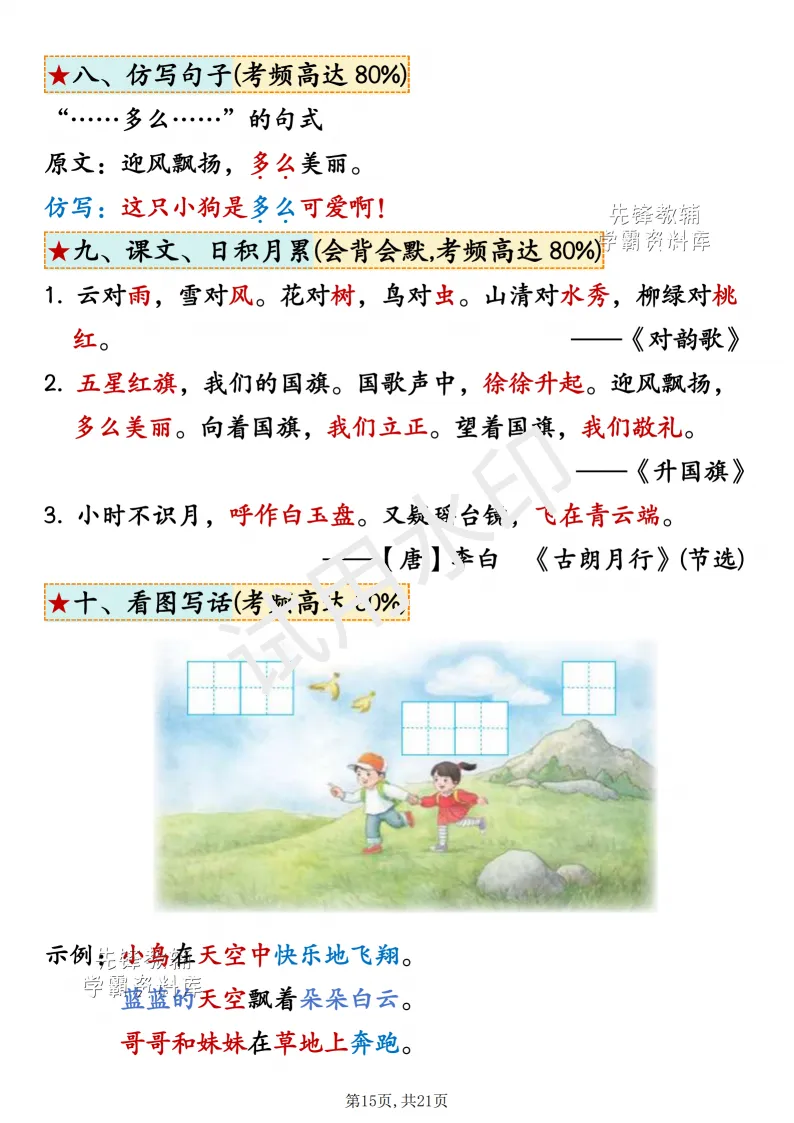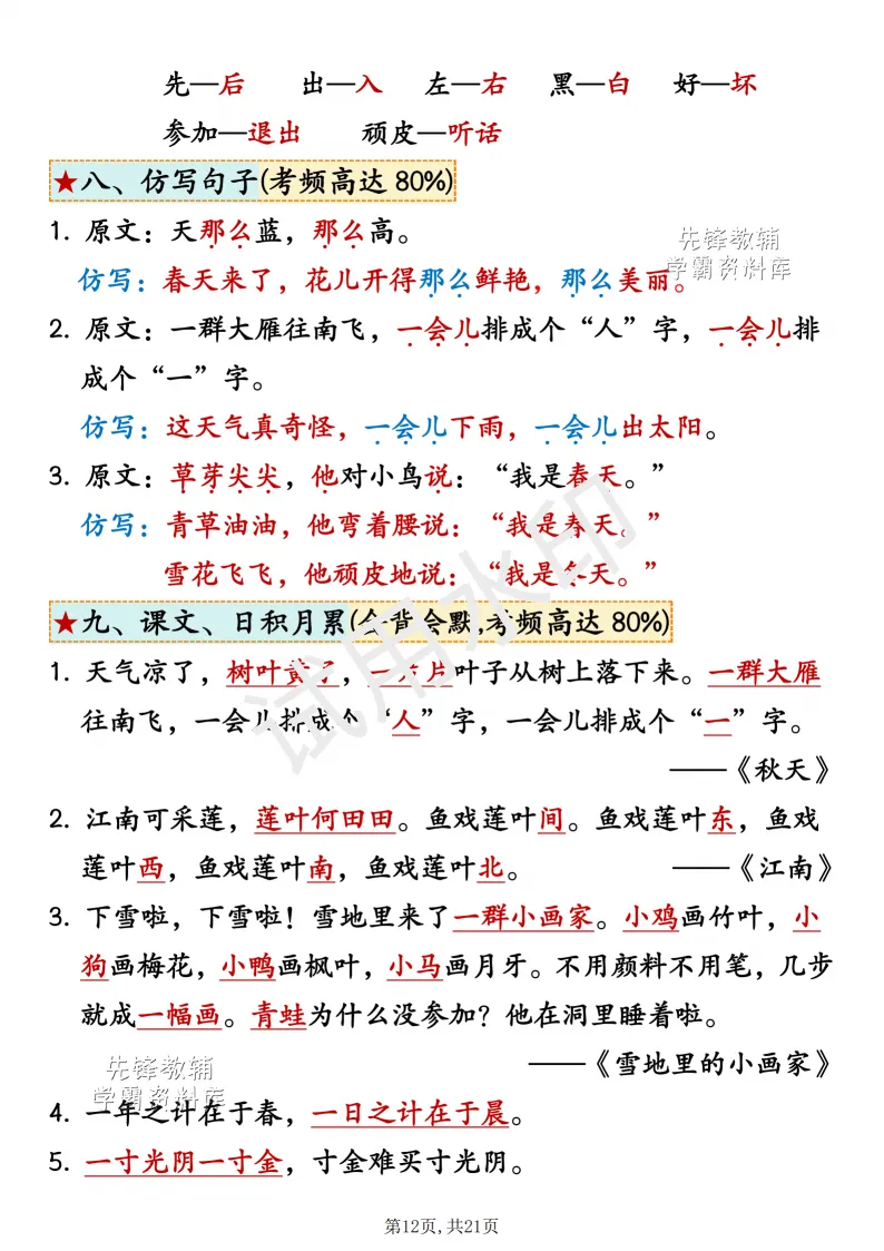 一年级上语文《1~8单元考点总结》能让孩子们提升: