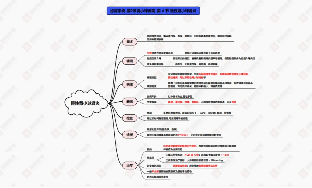 全套导学思维导图,整理了重难点系统的常考点,并将每个疾病都按照表现、检查、诊断、治疗等多维度展示。