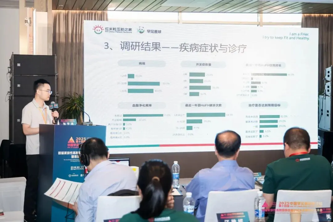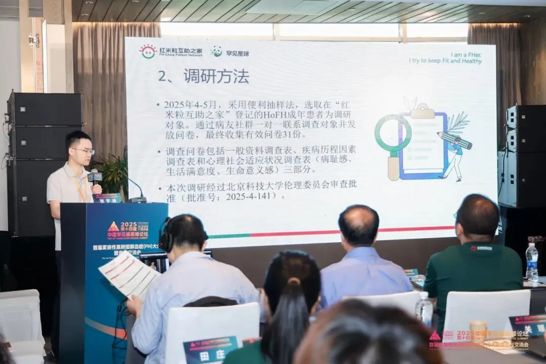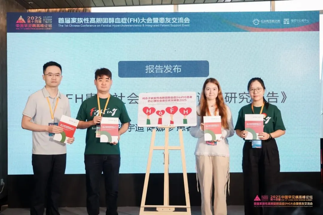 9月20日大会现场,由红米粒互助之家联合北京科技大学社会学系张宇迪副教授团队共同完成的《纯合子家族性高胆固醇血症(HoFH)患者的心理社会适应状况调查2025》正式发布。