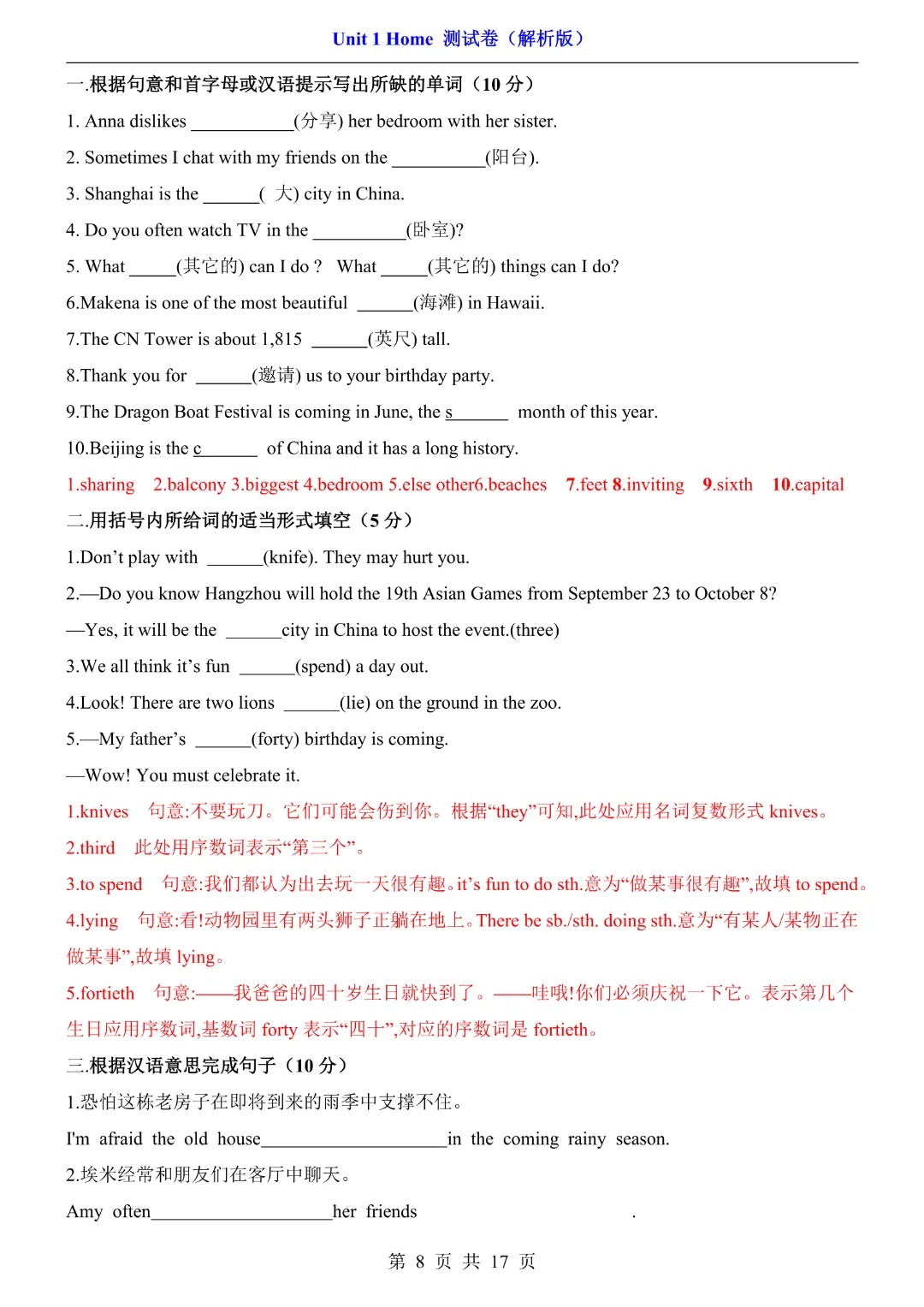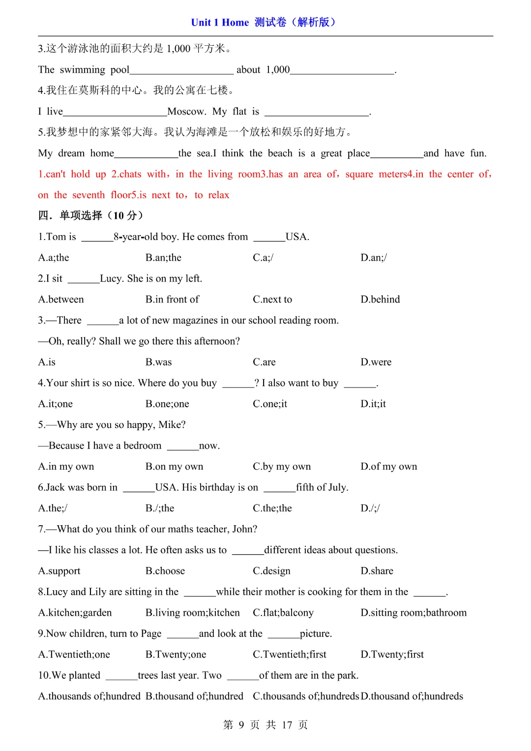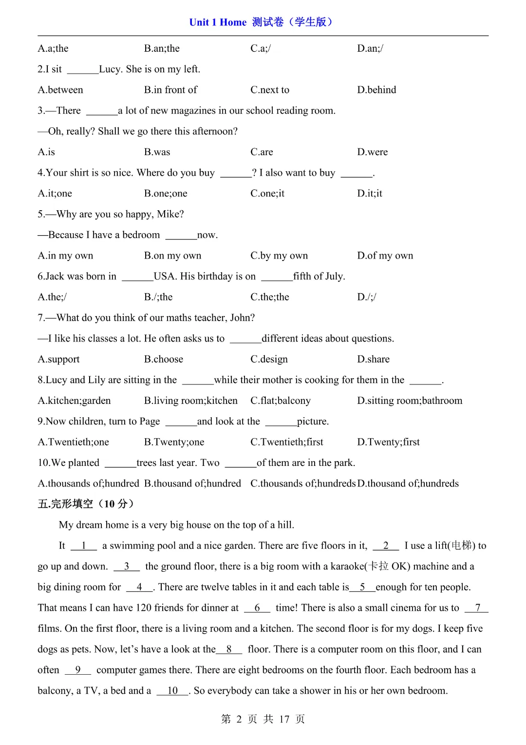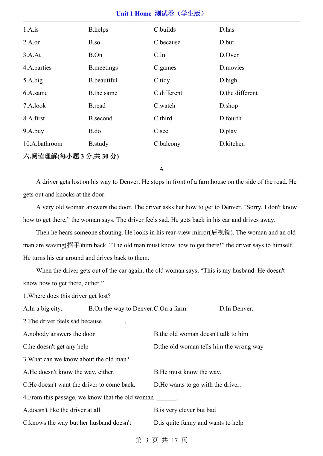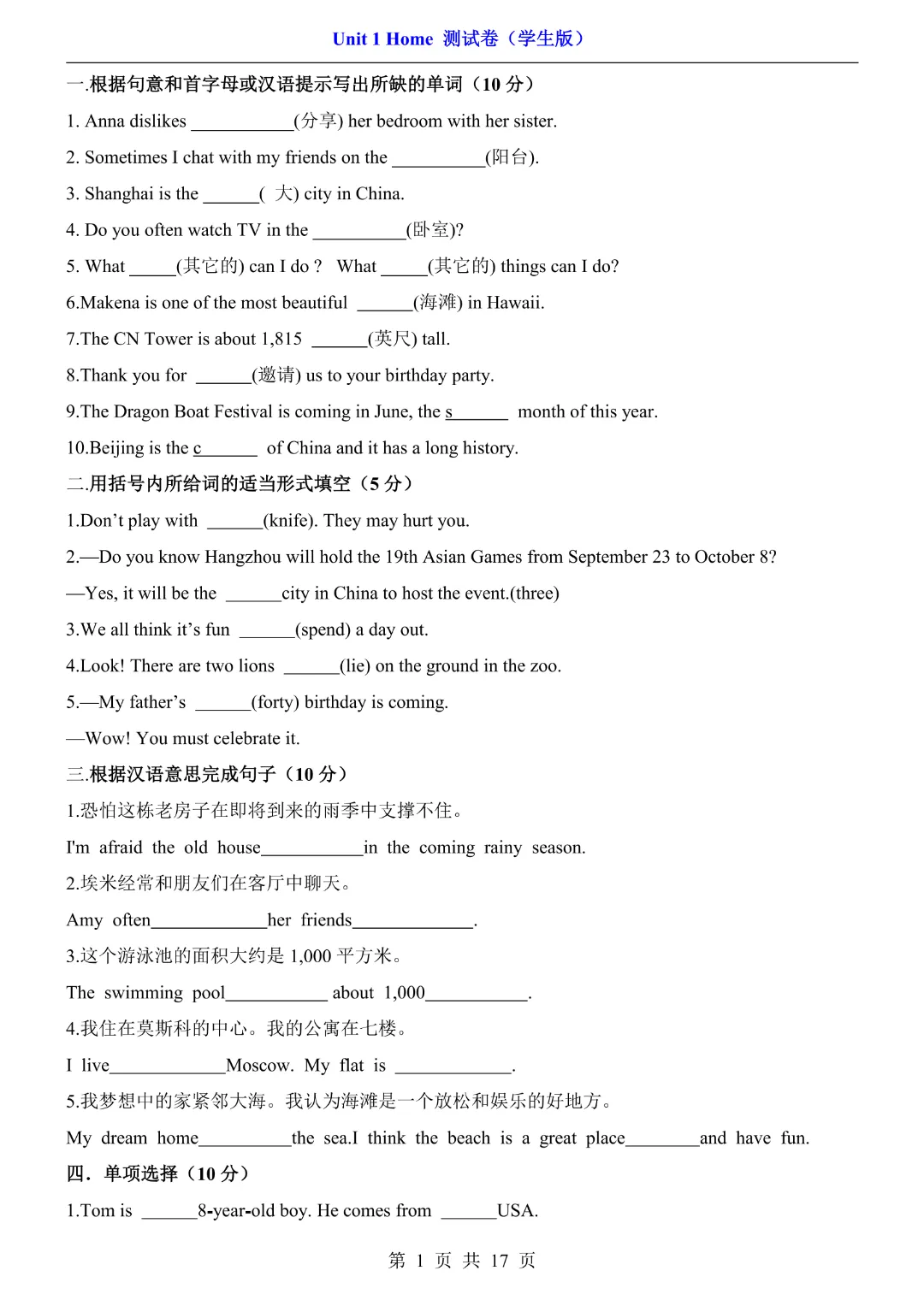 26春七年级下册译林版【英语第一单元测试卷】|完整电子版可打印