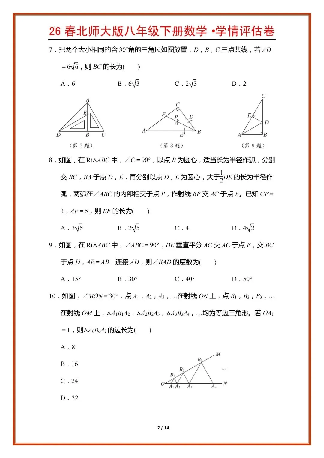 欢迎大家,这里是多多资料库 |小初高,今天要给大家带来的是【2026春初中数学】北师大版数学八年级下册(教资/教学/备课/学生预习)学习资料包高清pdf电子版,高清pdf电子版,文末免费领取!