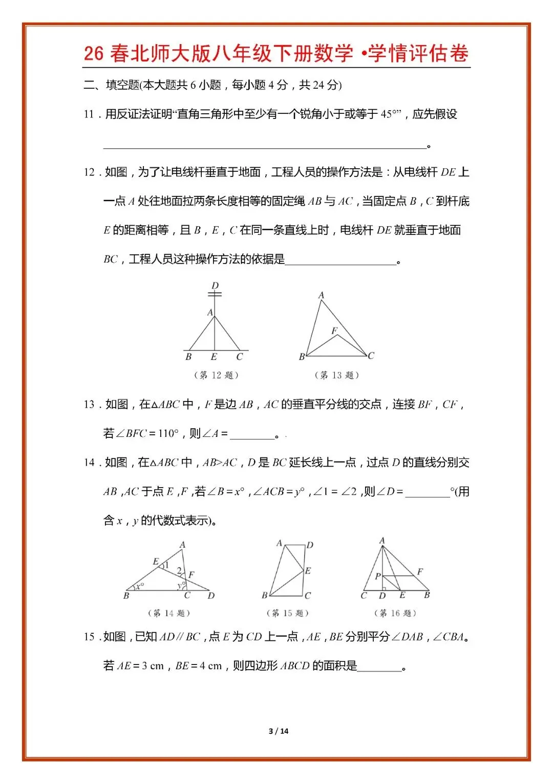 【2026春初中数学】北师大版数学八年级下册(教资/教学/备课/学生预习)学习资料包高清pdf