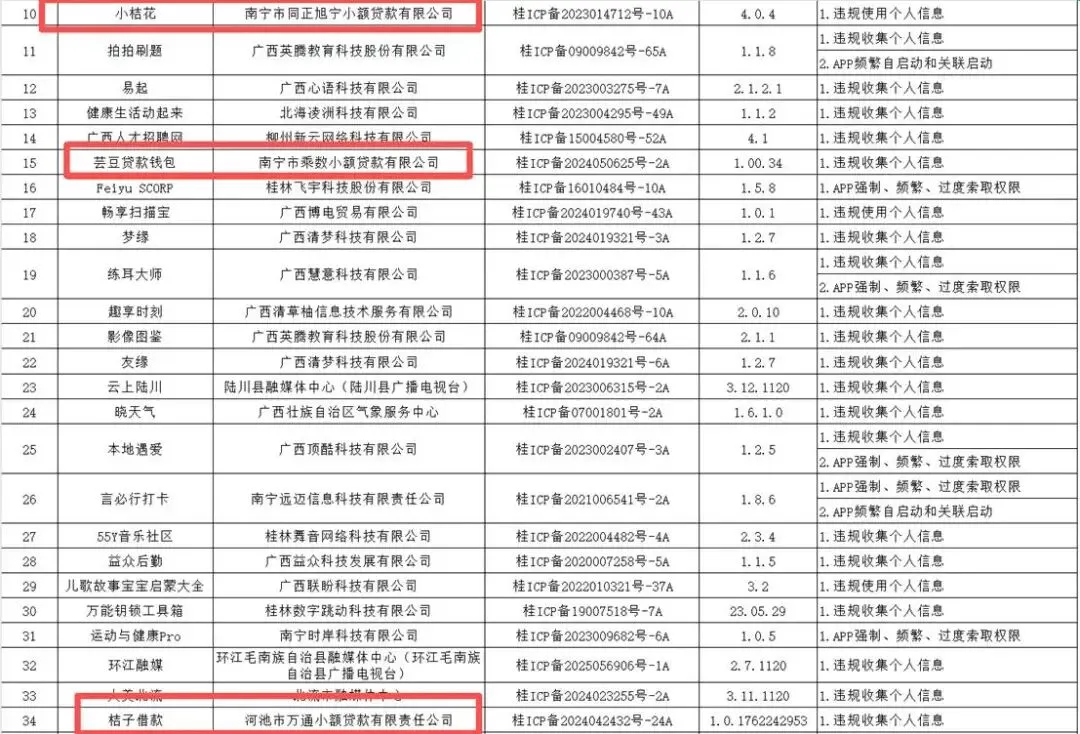 近日,广西通信管理局对40款侵害用户权益行为的App进行通报,其中三家小贷公司旗下App被点名。