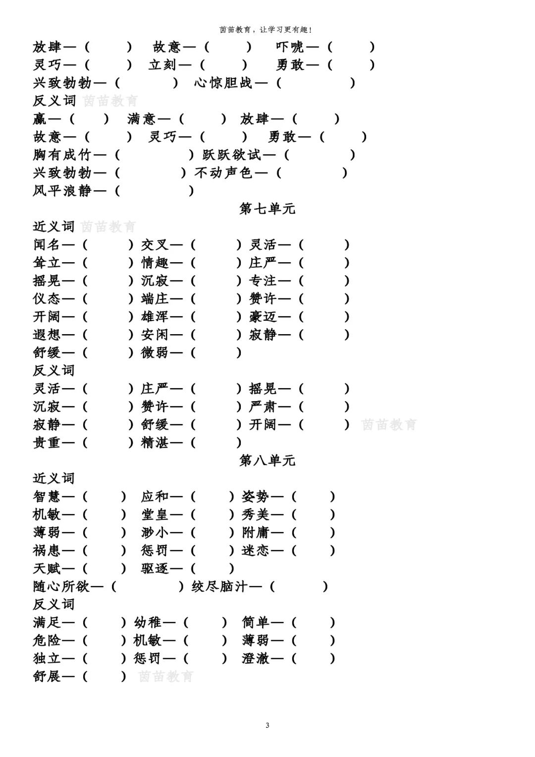 反义词。