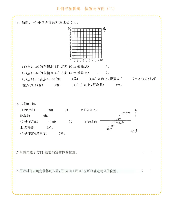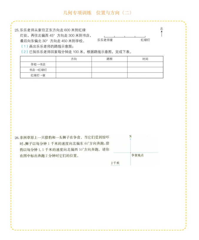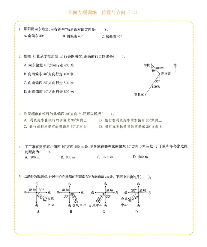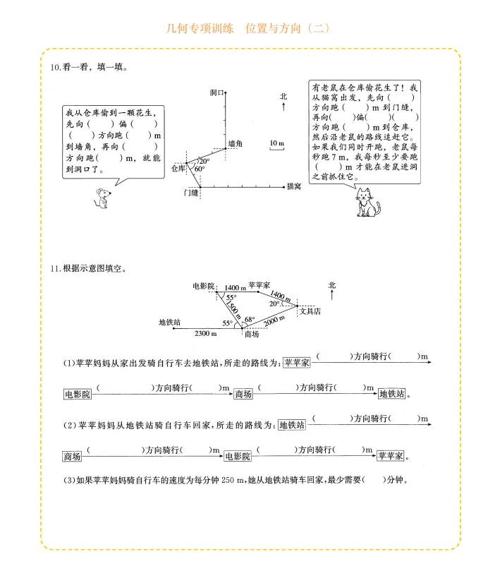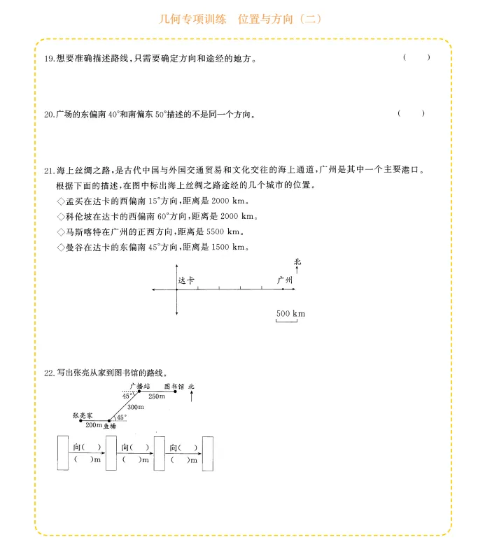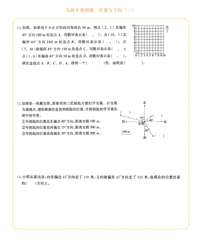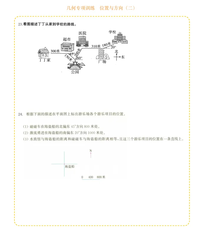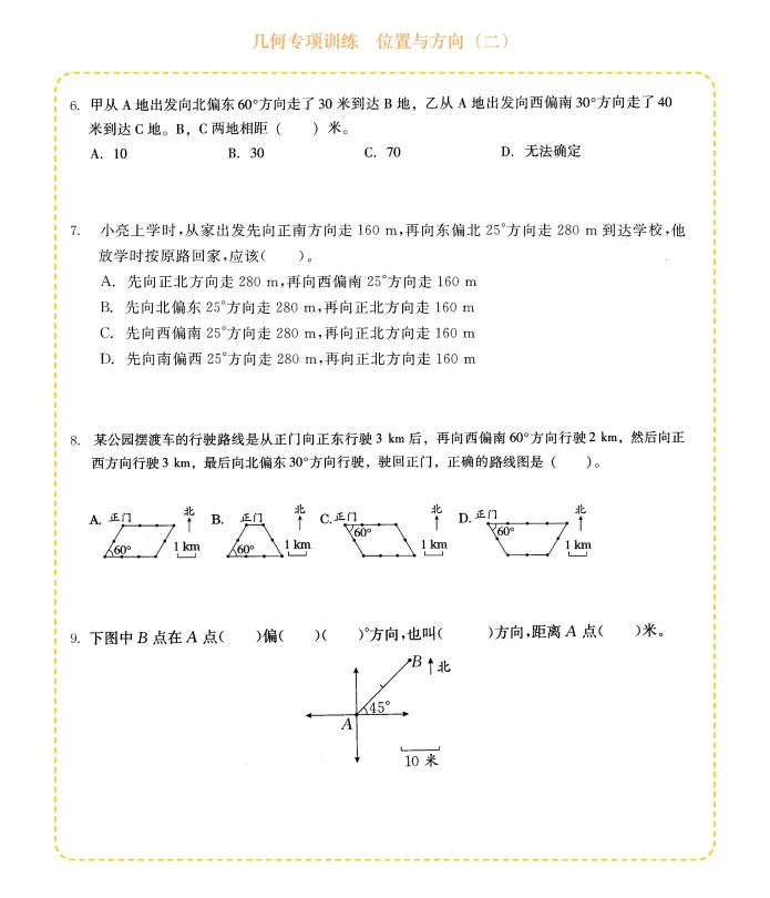 六年级数学几何专项训练-位置与方向,电子版可打印