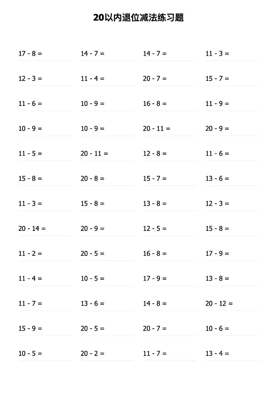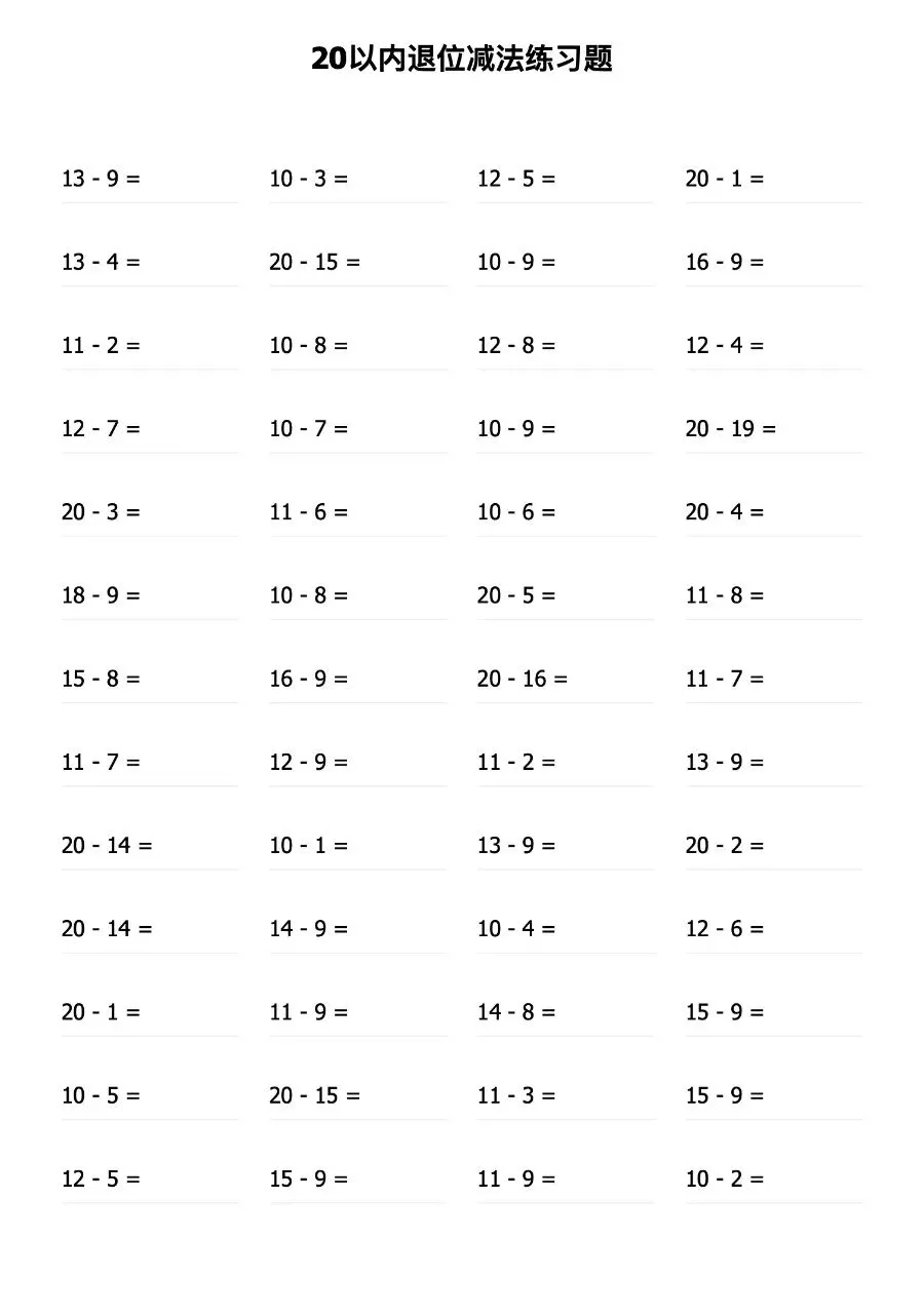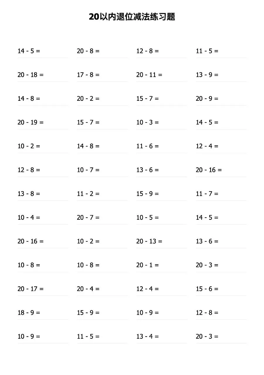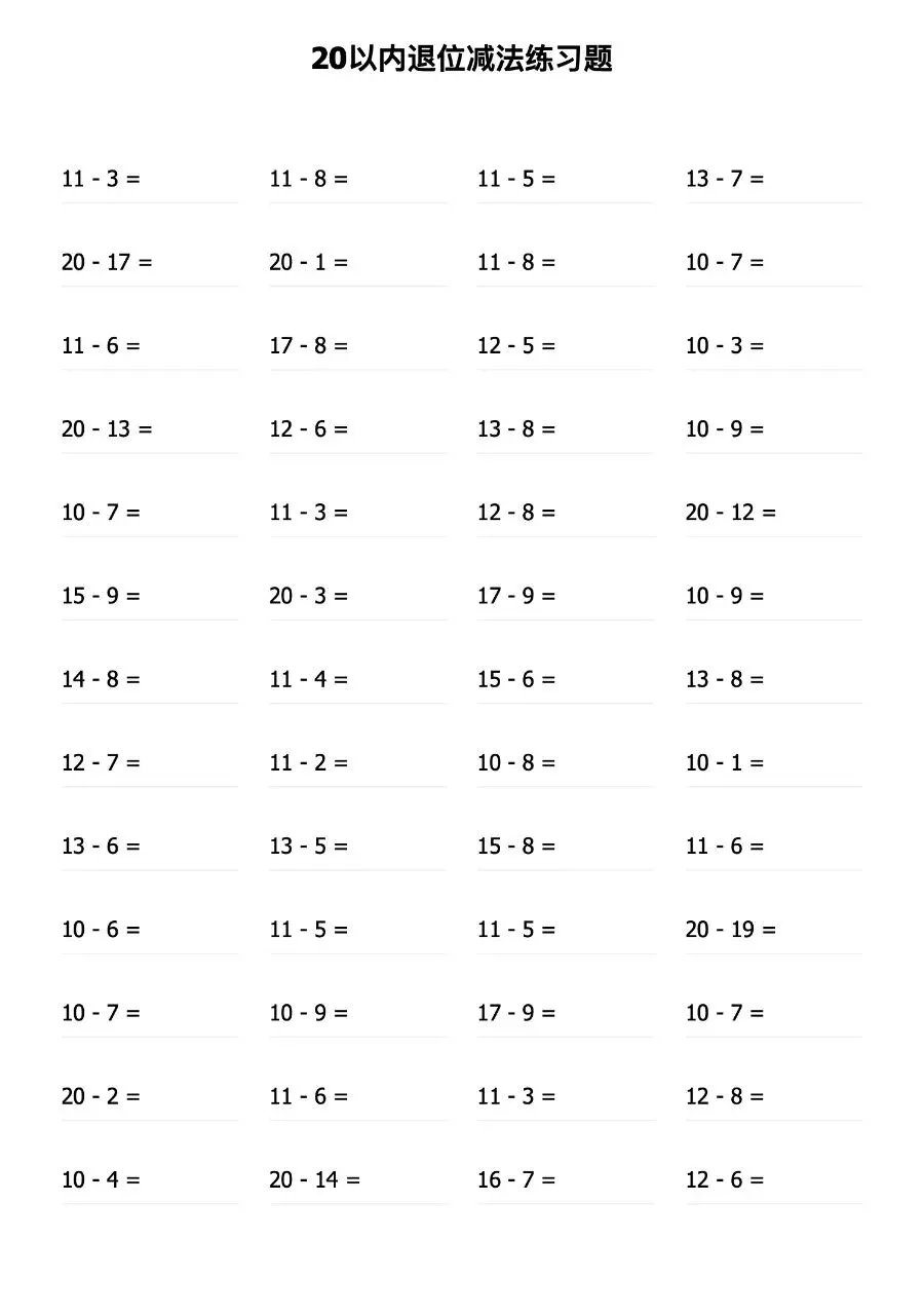 本站文章均为手工撰写未经允许谢绝转载:夜雨聆风 » 20以内退位减法练习题专项训练可打印电子版