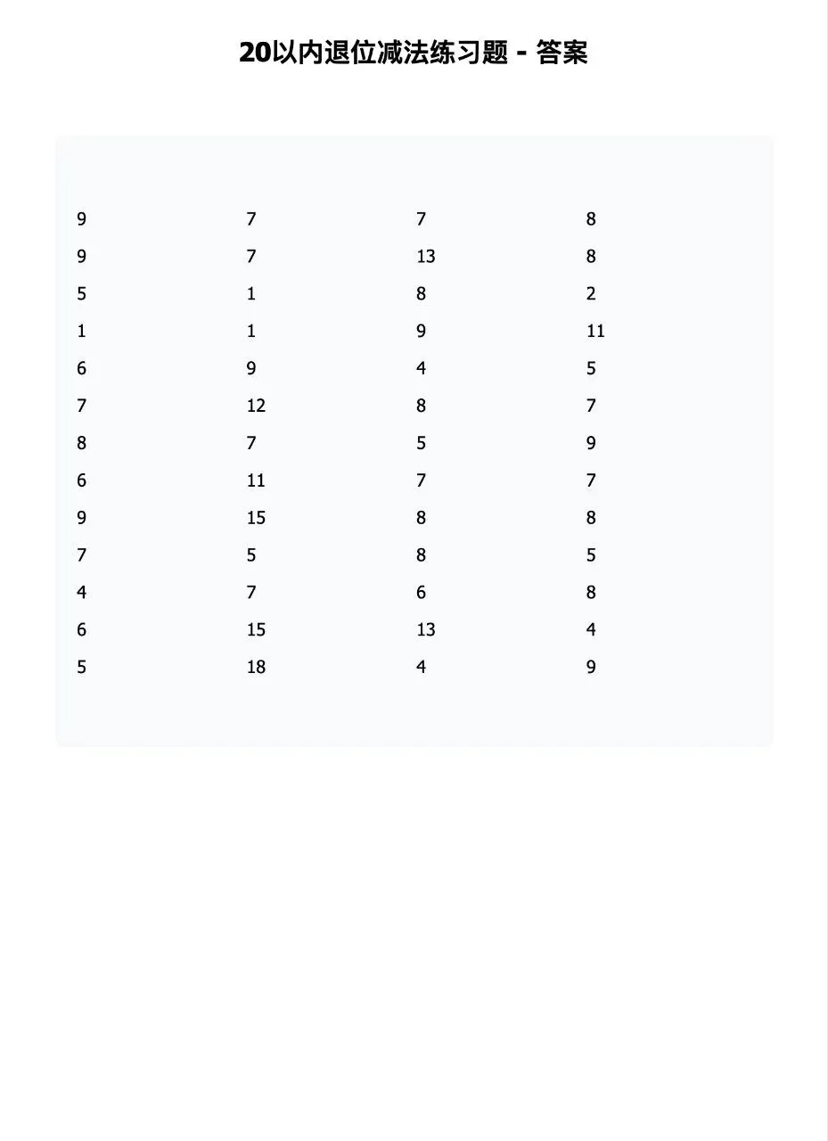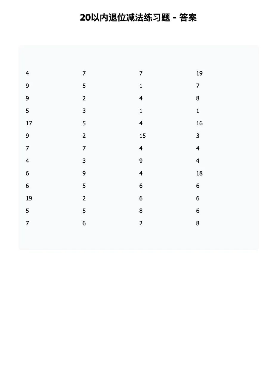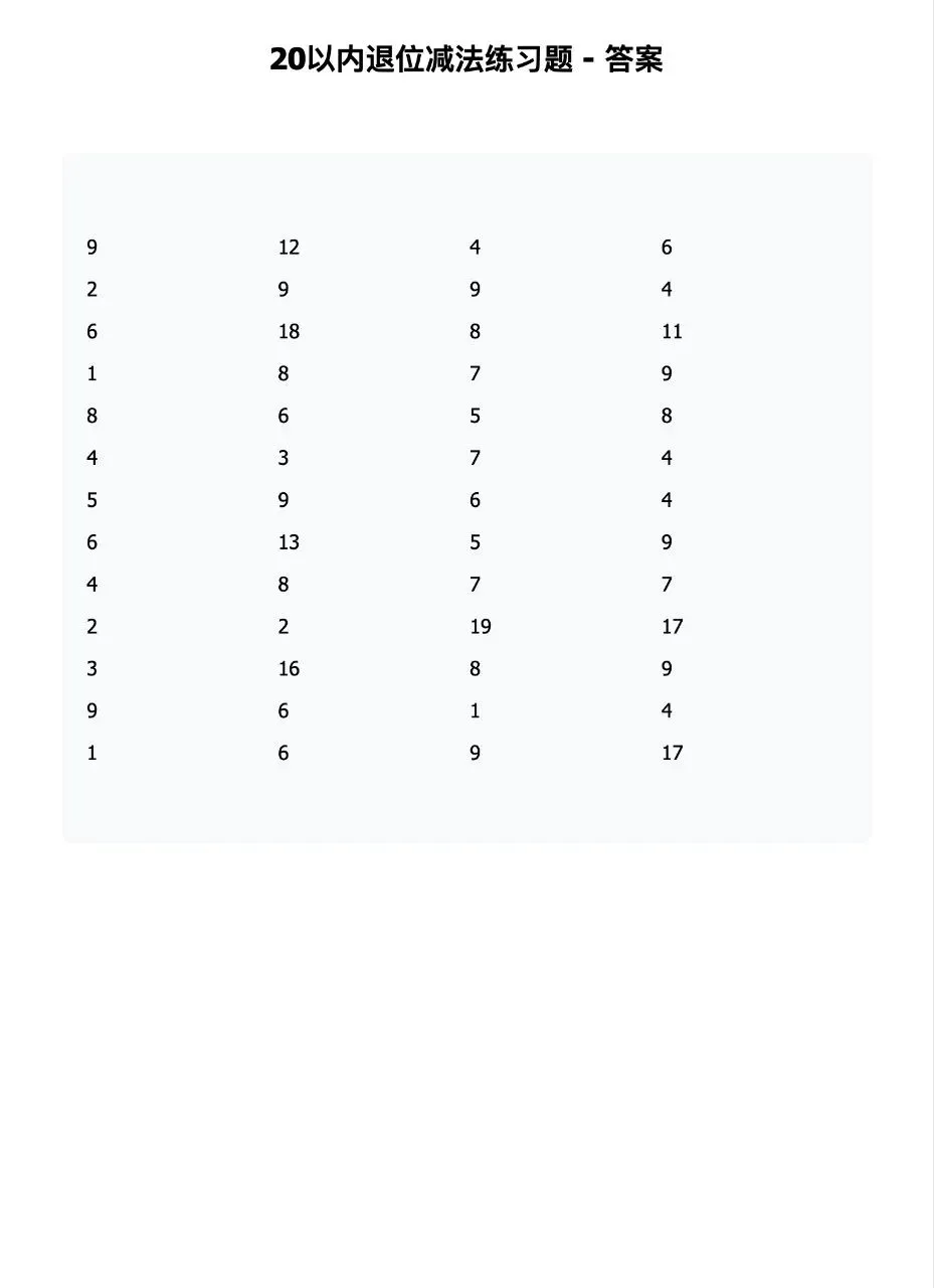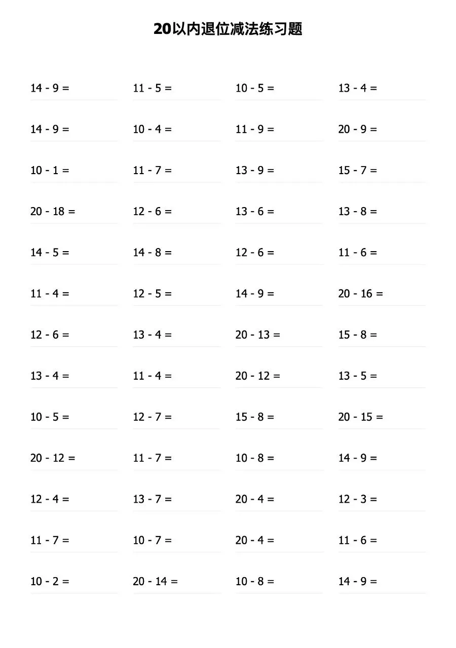 本站文章均为手工撰写未经允许谢绝转载:夜雨聆风 » 20以内退位减法练习题专项训练可打印电子版