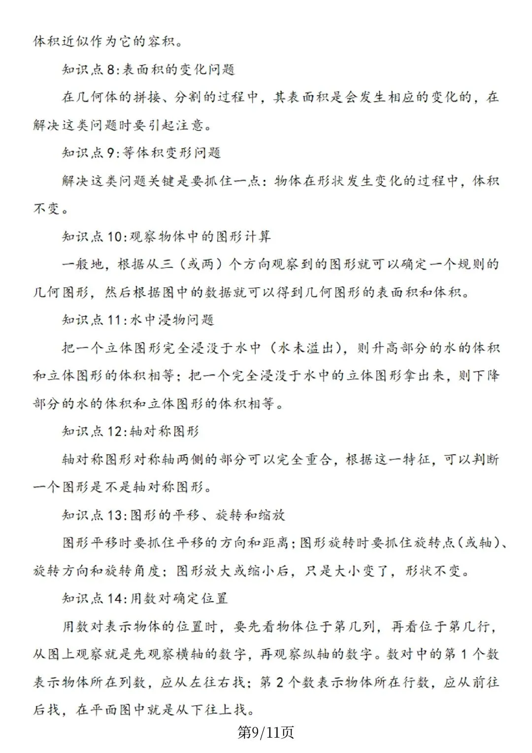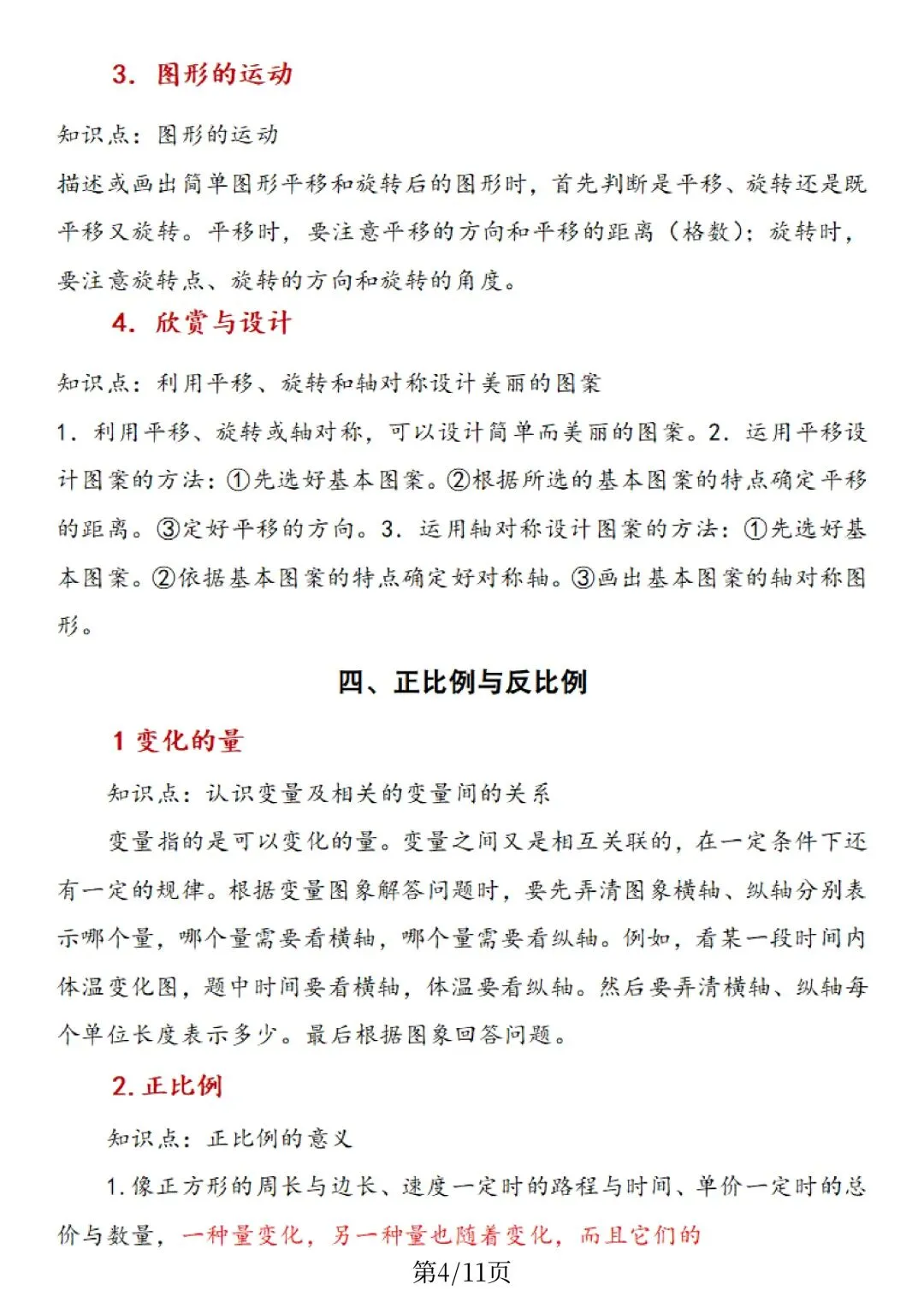 今天安安给大家分享:六年数学下册数学知识归纳【北师大版】,共11页,资料全册核心考点全覆盖,含圆柱圆锥、比例、正反比例、图形运动、总复习等重点内容,条理清晰、重点突出。