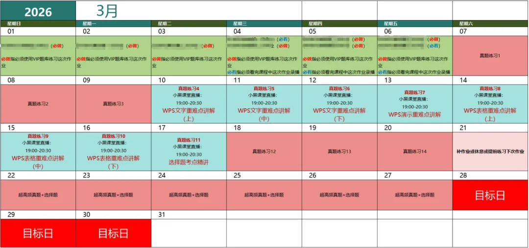不过大家不用过于焦虑,针对这些还未考到的考点,小黑老师和晓燕老师结合历年出新题规律以及考纲的新考点,给大家在冲刺班拆解了13次高频考点作业,这13次作业几乎涵盖了26年3月考试可能会出新题的内容,大家一定要花13天时间重点练习新考点,这样考试出新题才能万无一失
