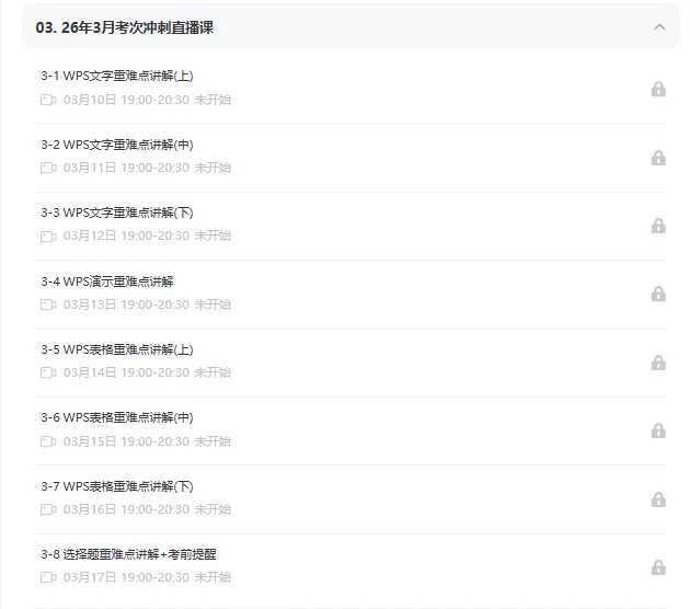 另外冲刺班给大家安排了8节高频考点直播精讲,系统的把考试所有的重要考点全部跟大家讲一遍,另外我们还在冲刺班中给大家准备了本次考试最新考点预测视频,总共十几节(考前更新课表),让大家遇到新题也不怕