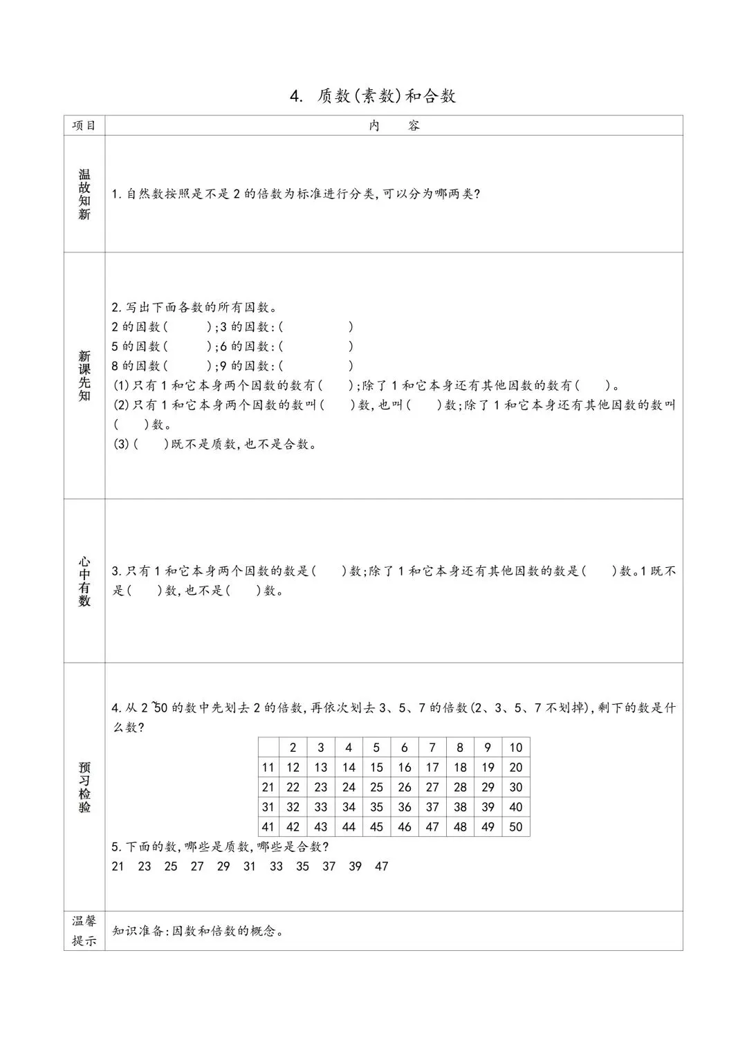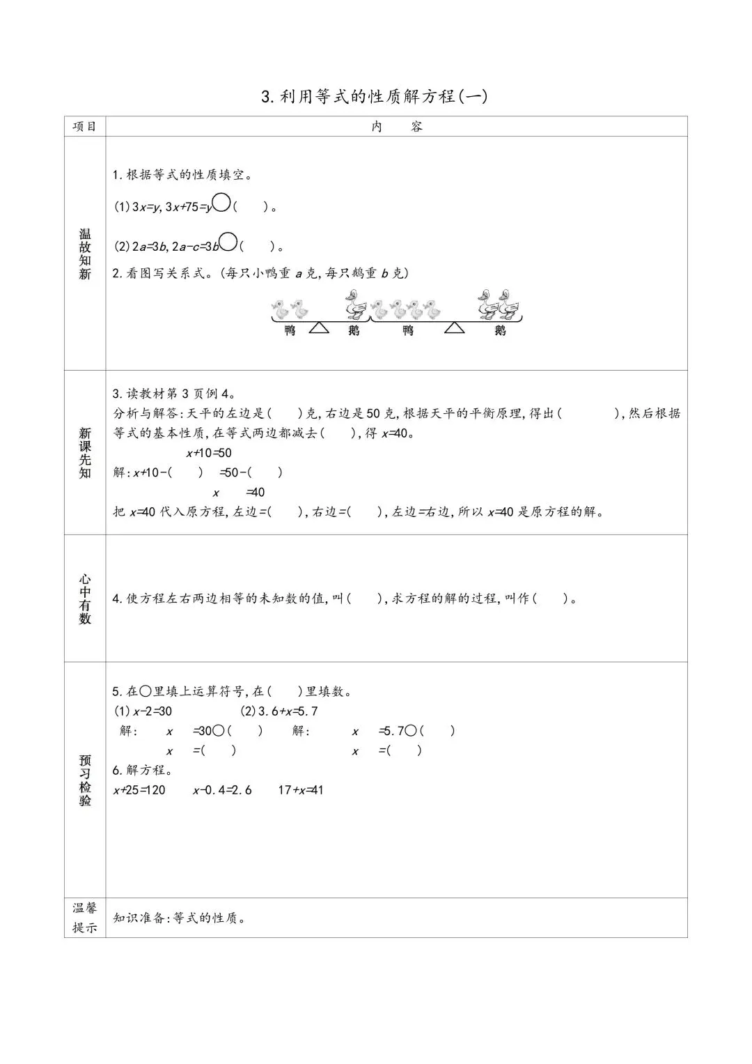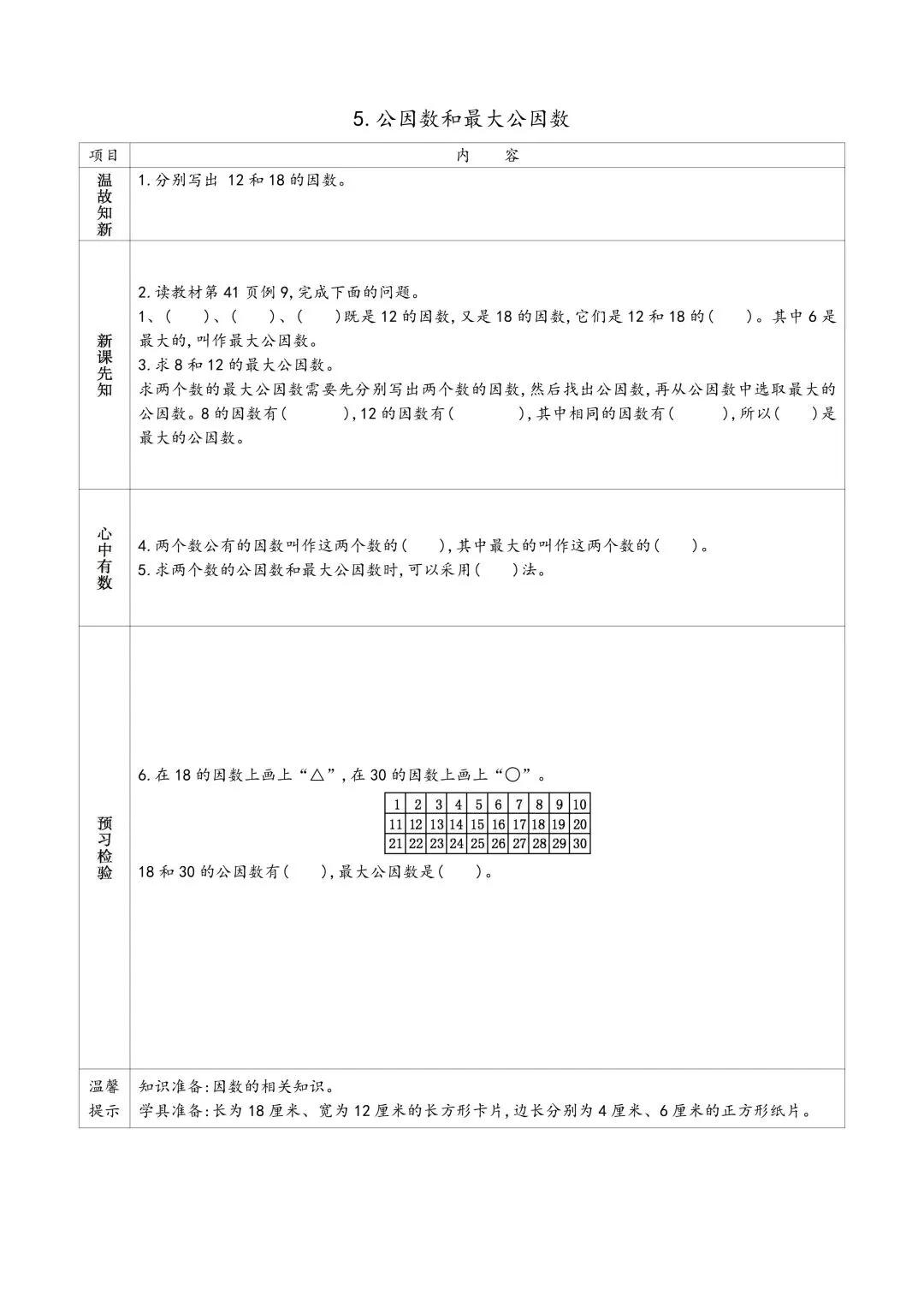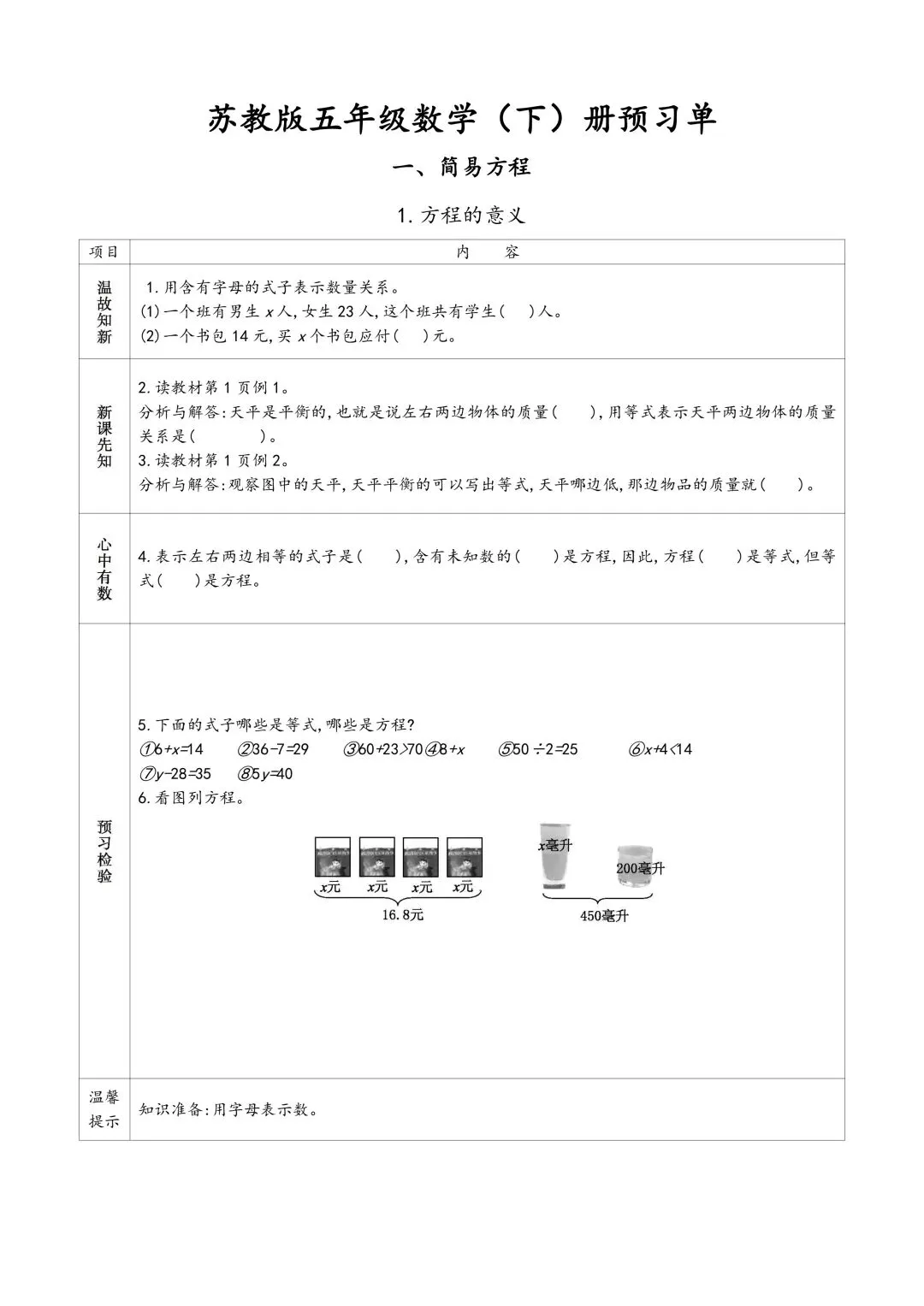 苏教版五年级下册数学预习单 有答案 可下载可打印
