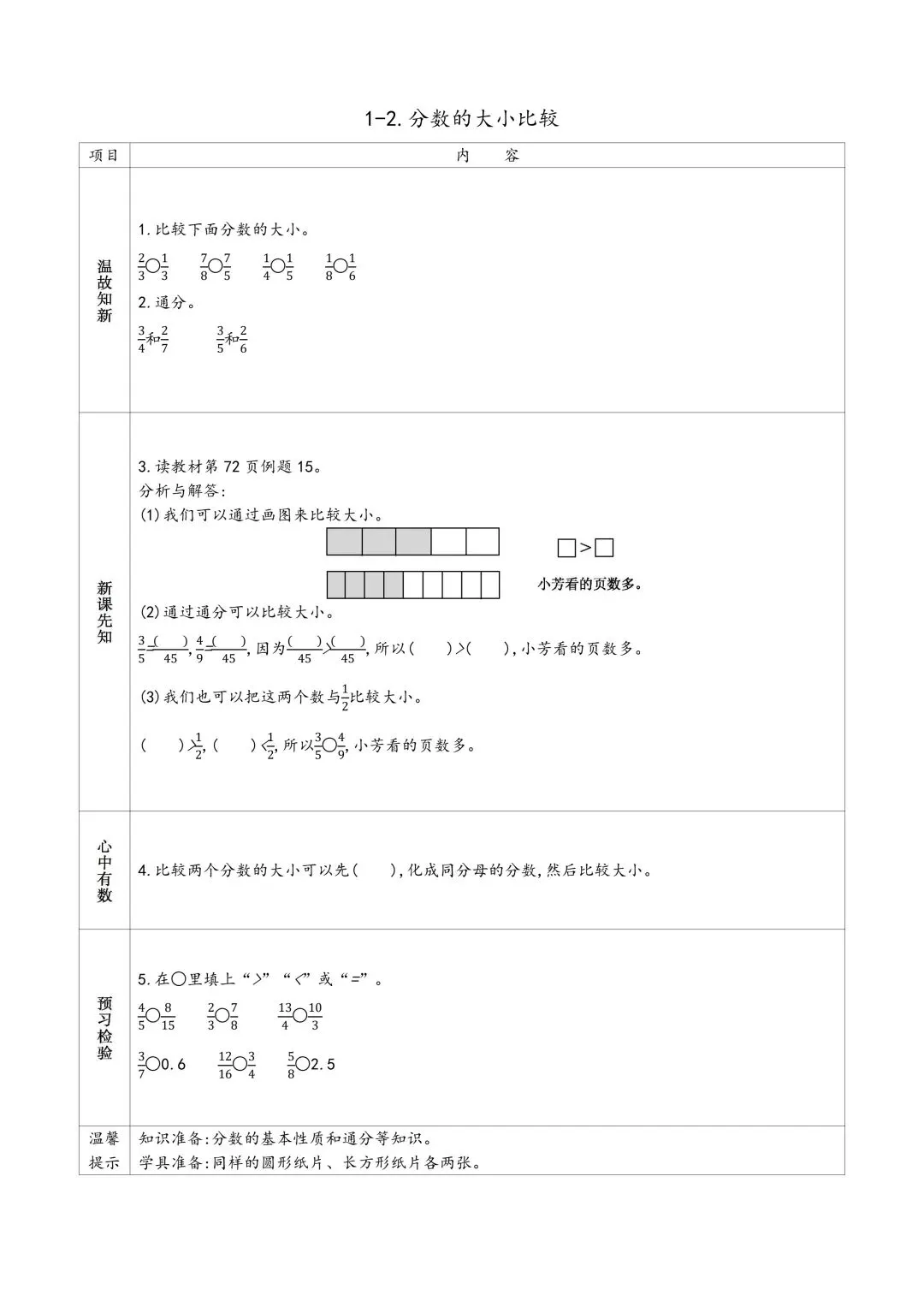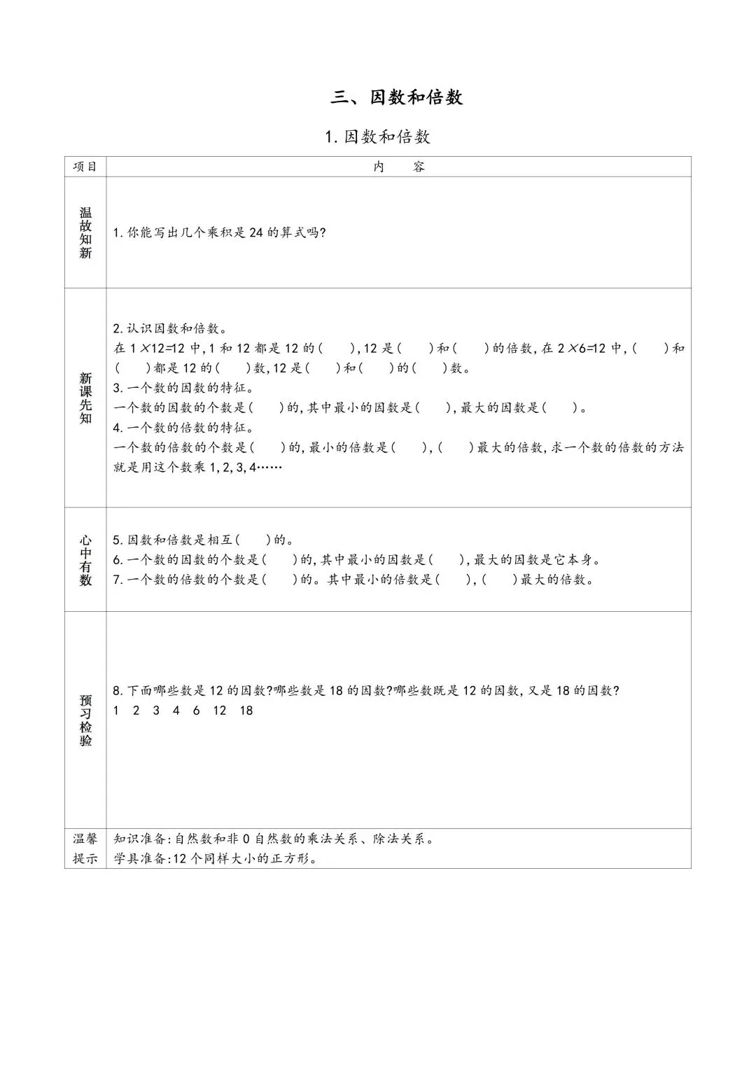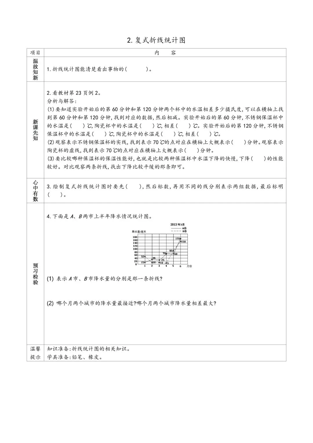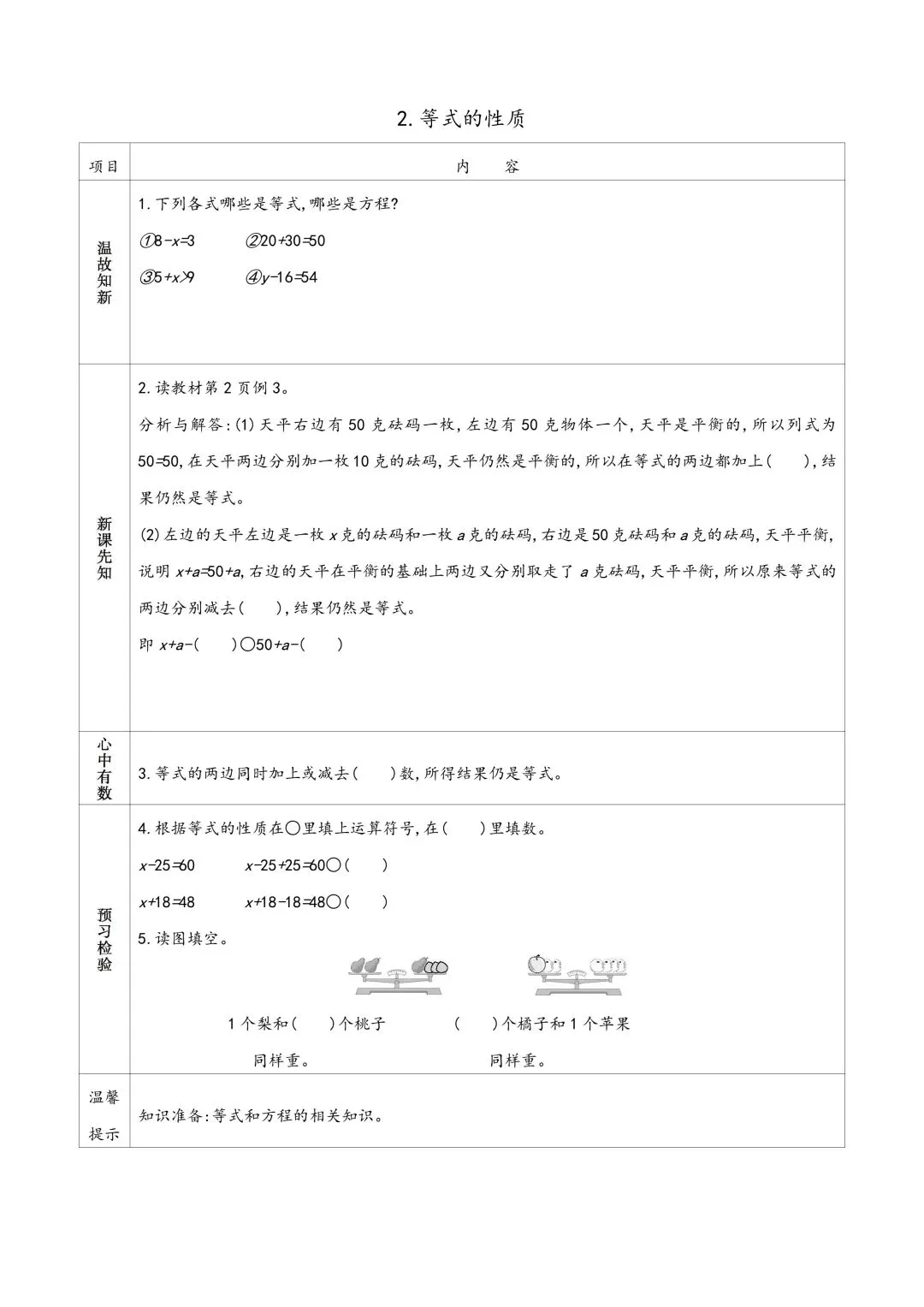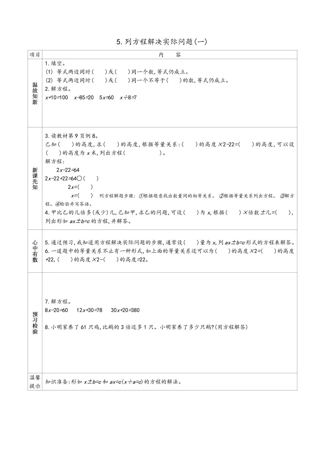 苏教版五年级下册数学预习单 有答案 可下载可打印
