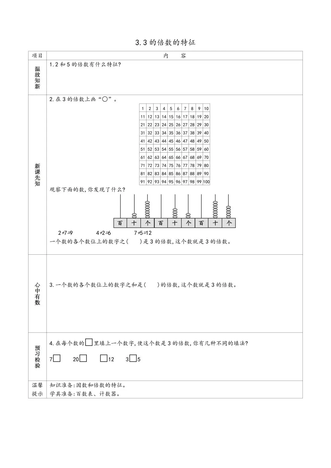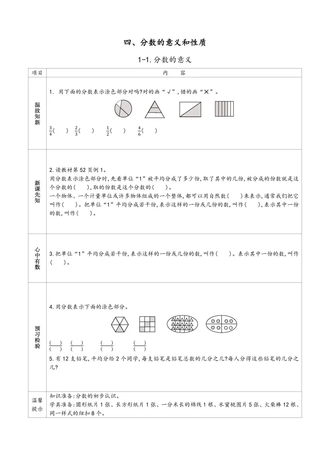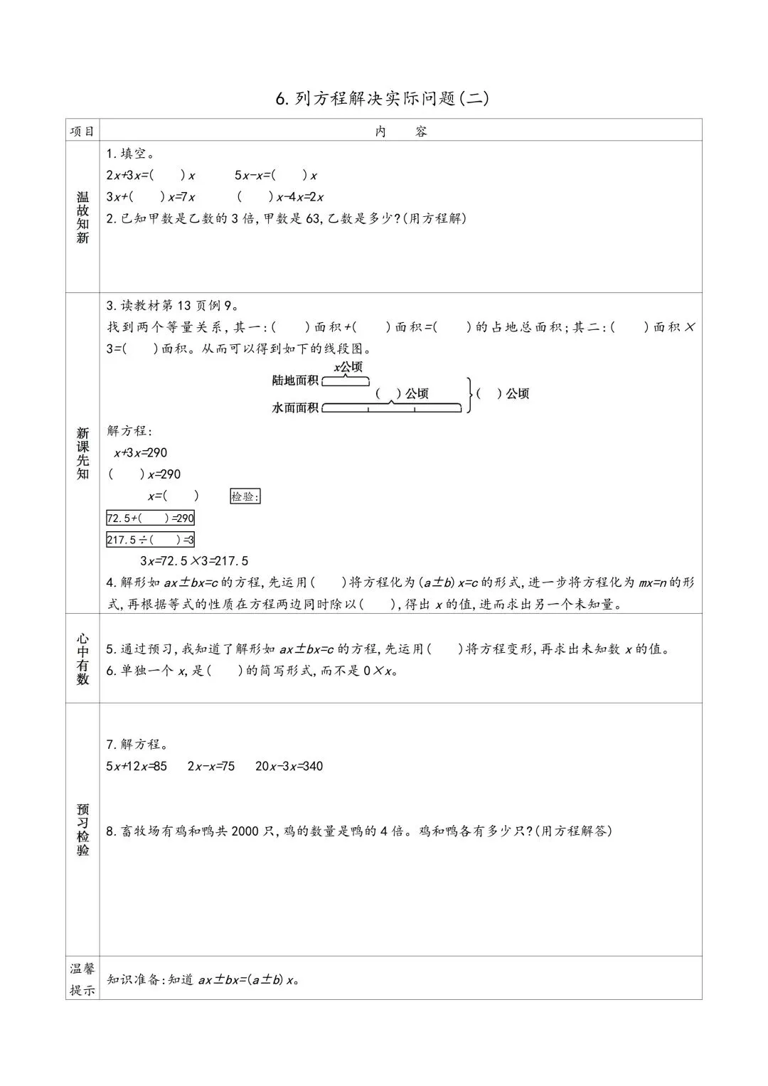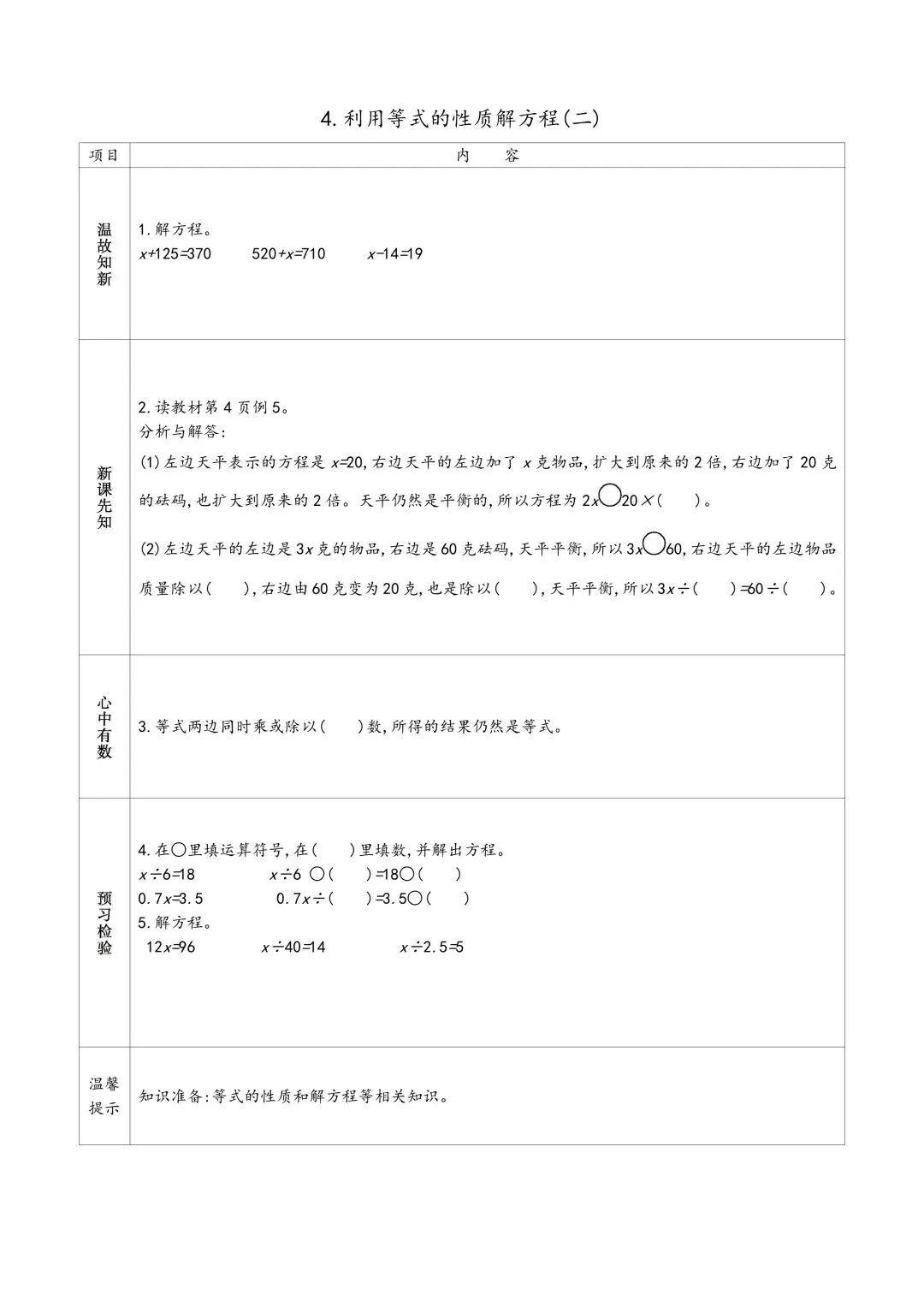 苏教版五年级下册数学预习单 有答案 可下载可打印